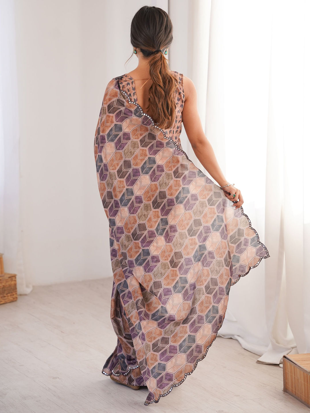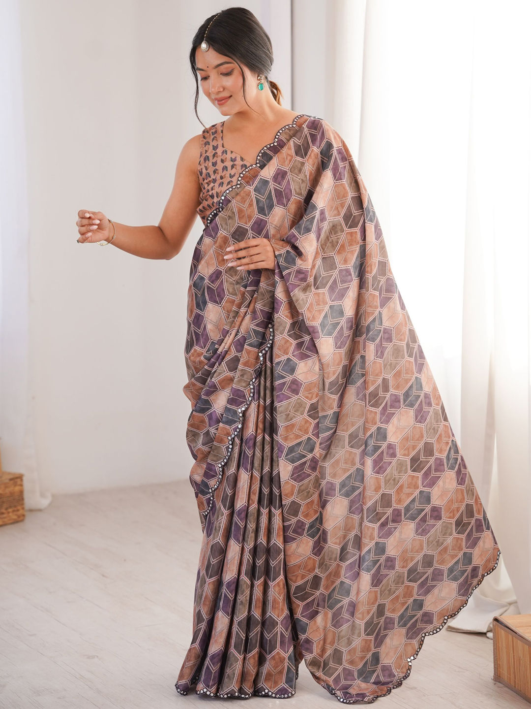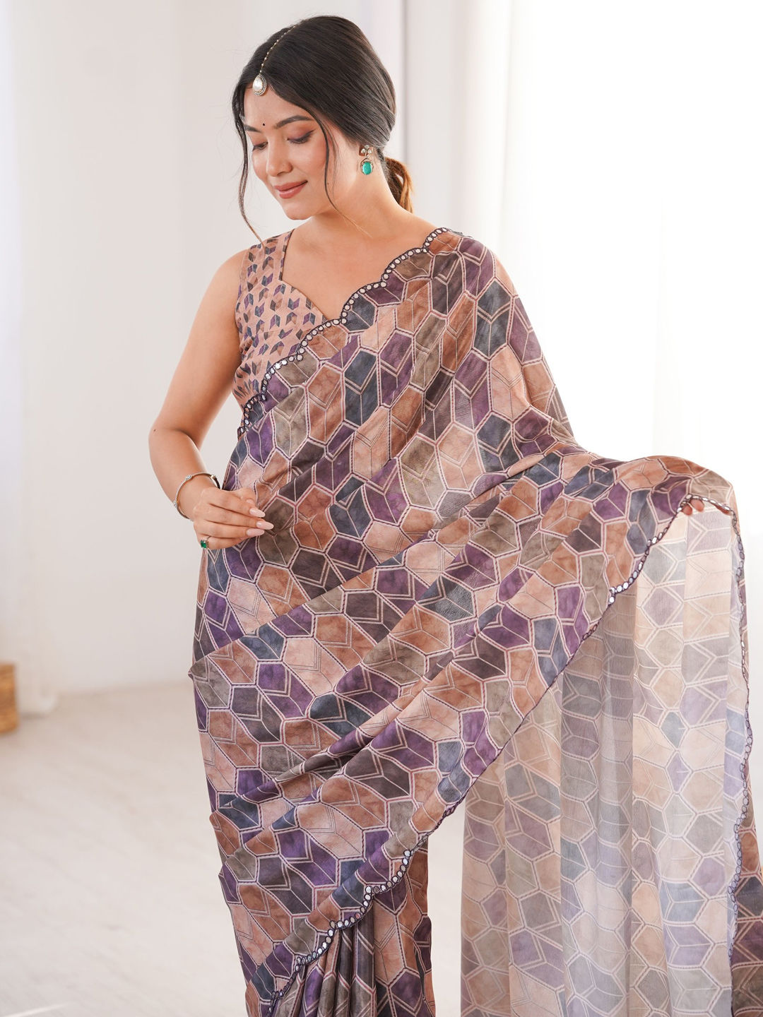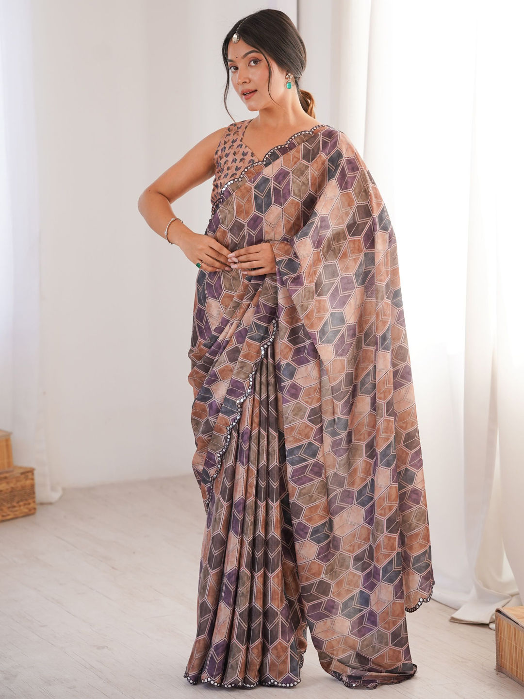 Multicolor color Saree in Chinon Silk fabric with Digital Print, Floral, Mirror work