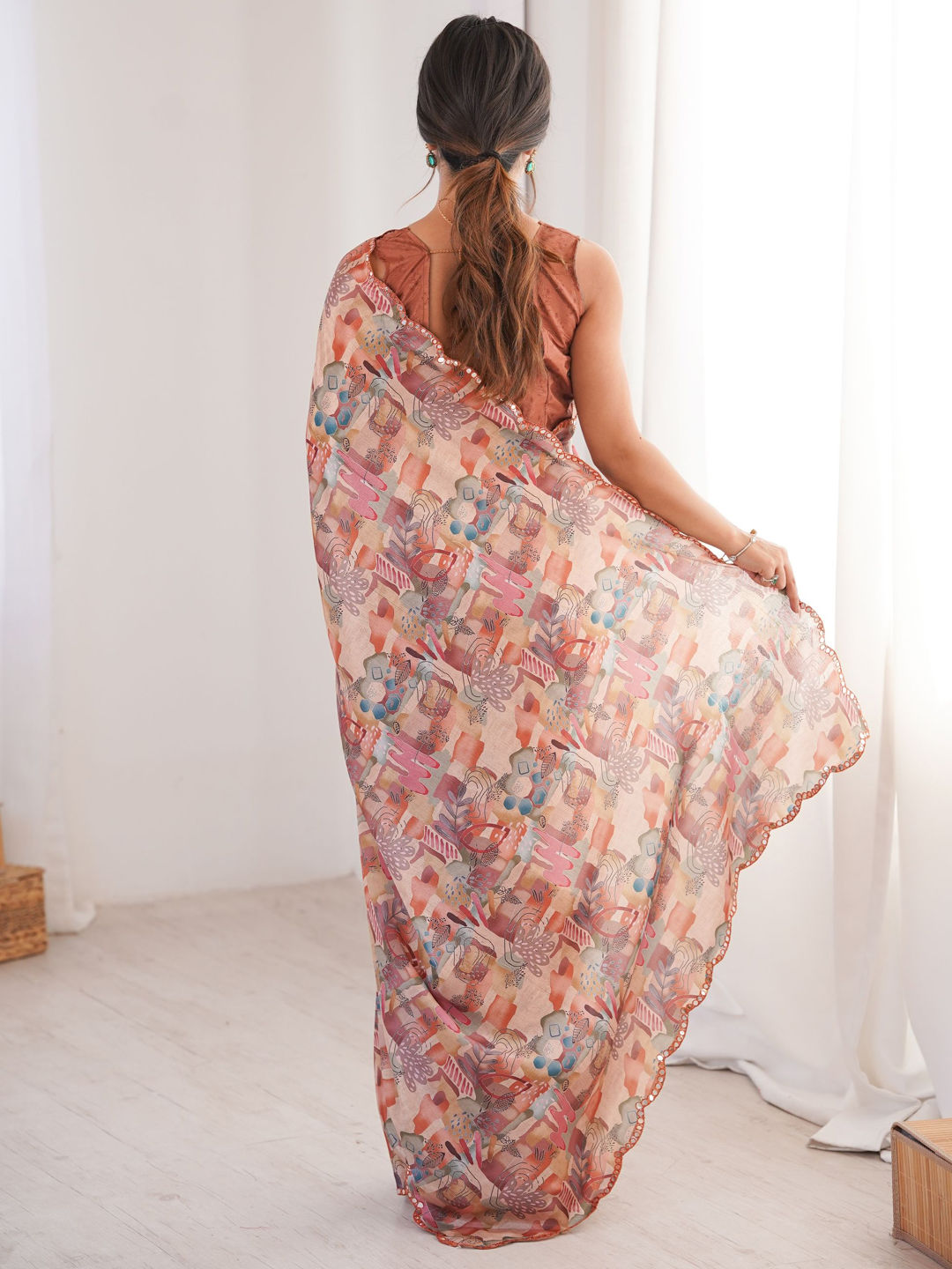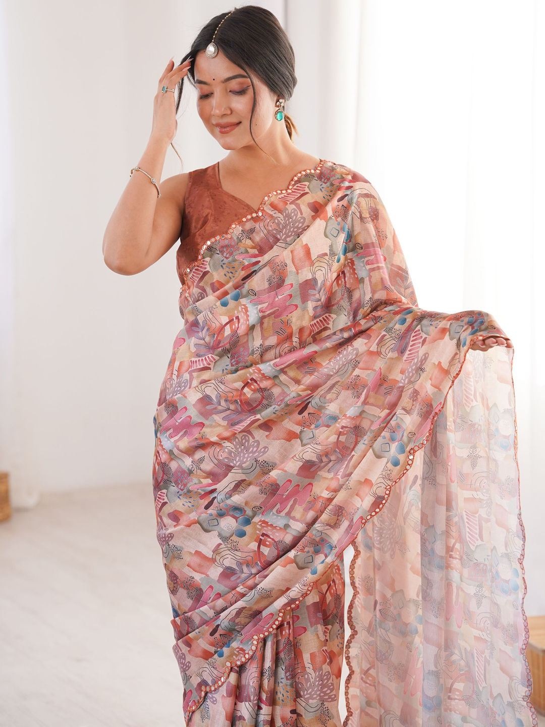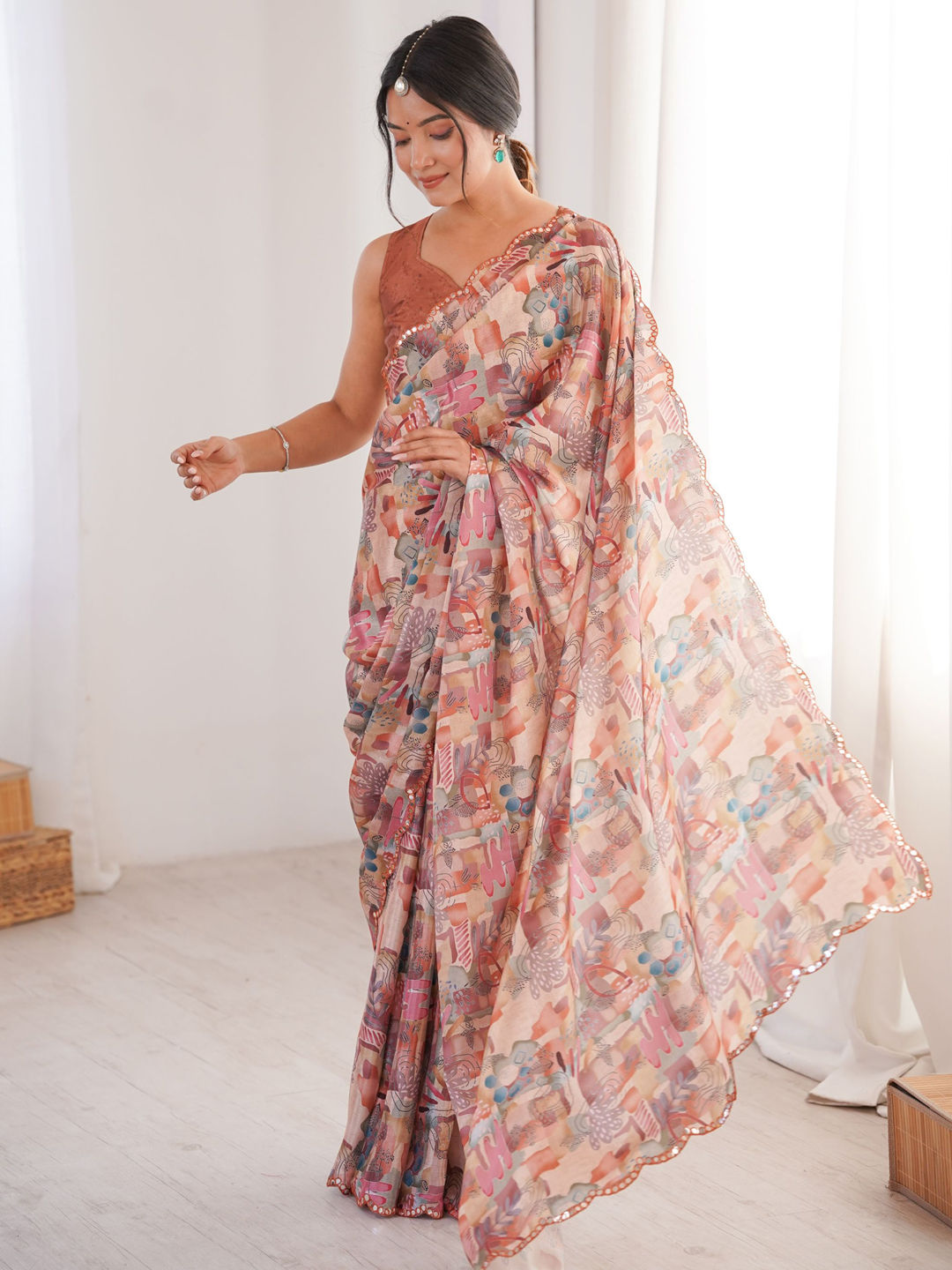 Chinon Silk Festive Saree in Multicolor with Digital Print work
