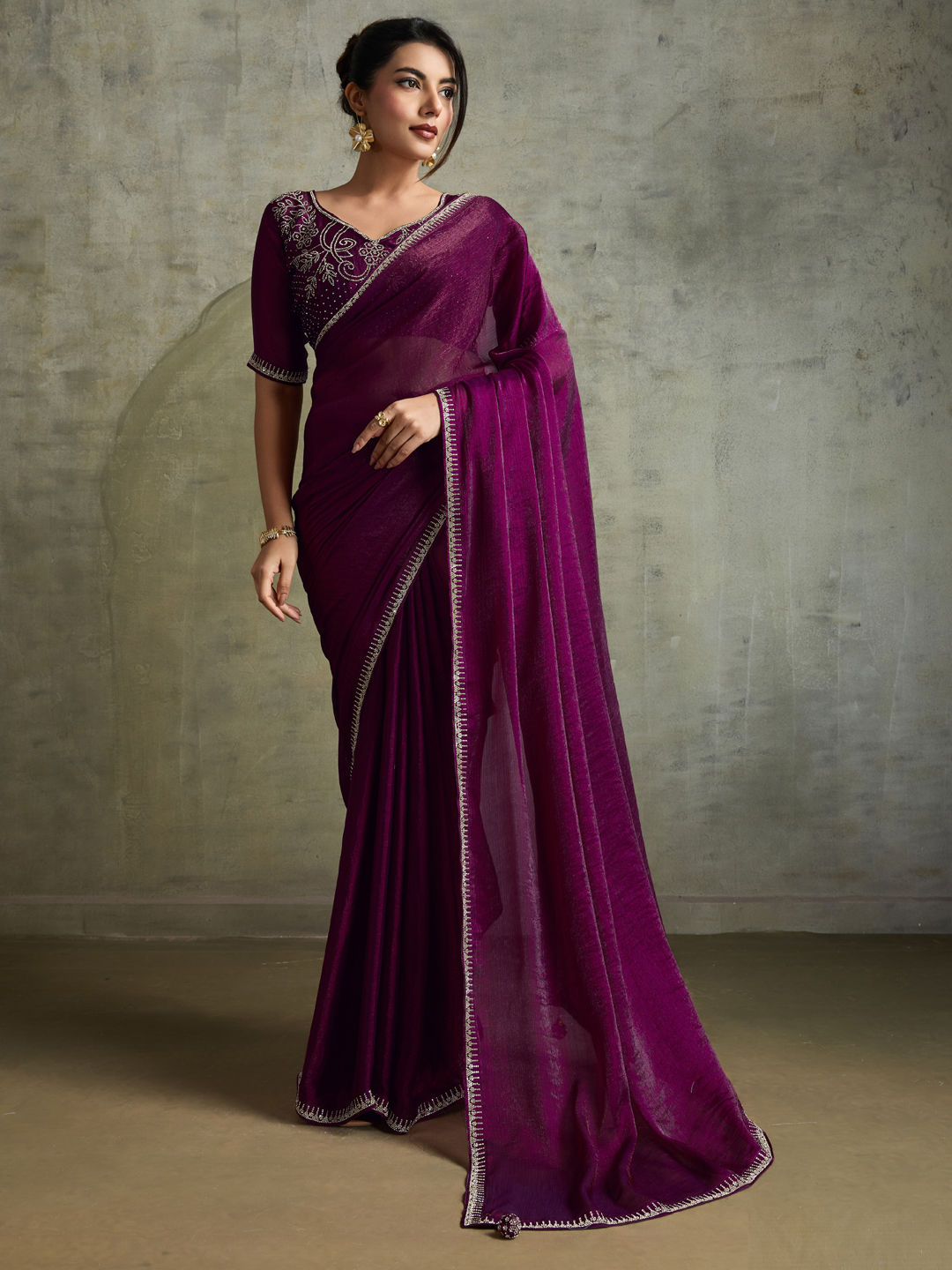 Chinon Silk Party Wear Saree in Purple and Violet with Swarovski work