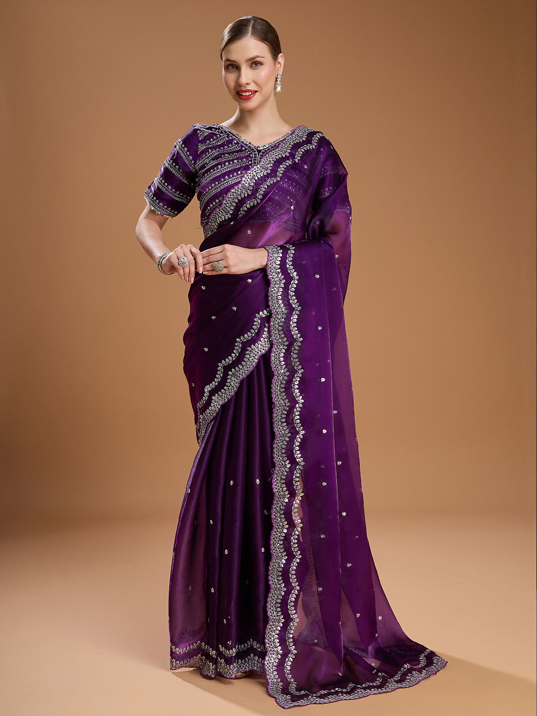 in Purple and Violet with Embroidered work
