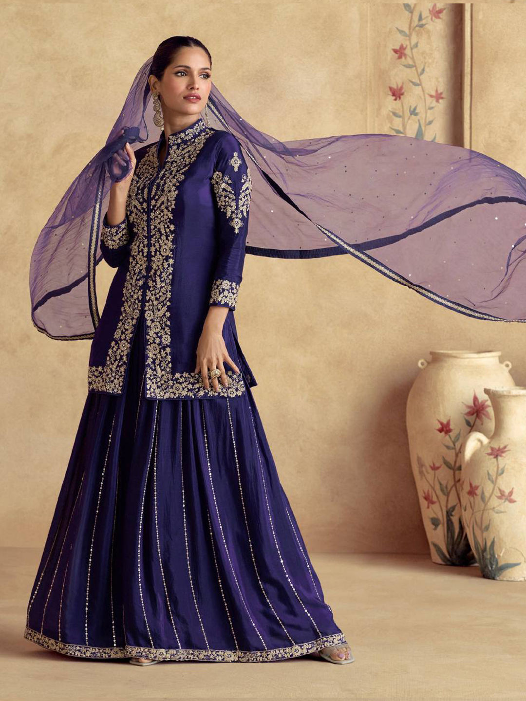 in Purple and Violet with Embroidered work
