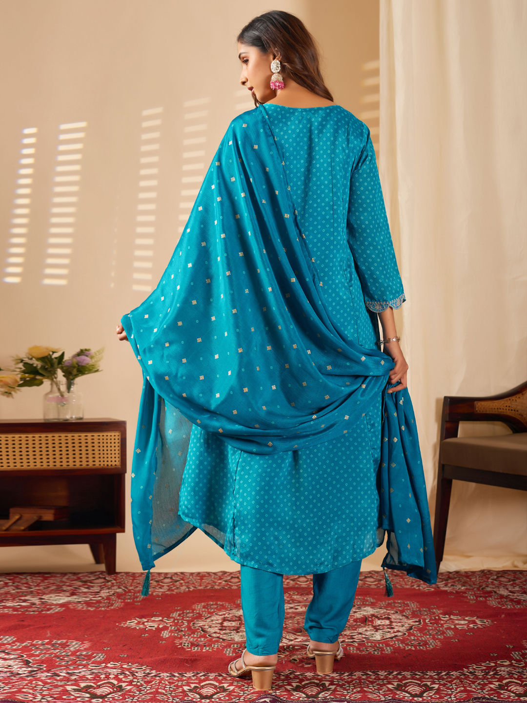 Green color Salwar Kameez in Chinon Silk fabric with Embroidered, Printed work