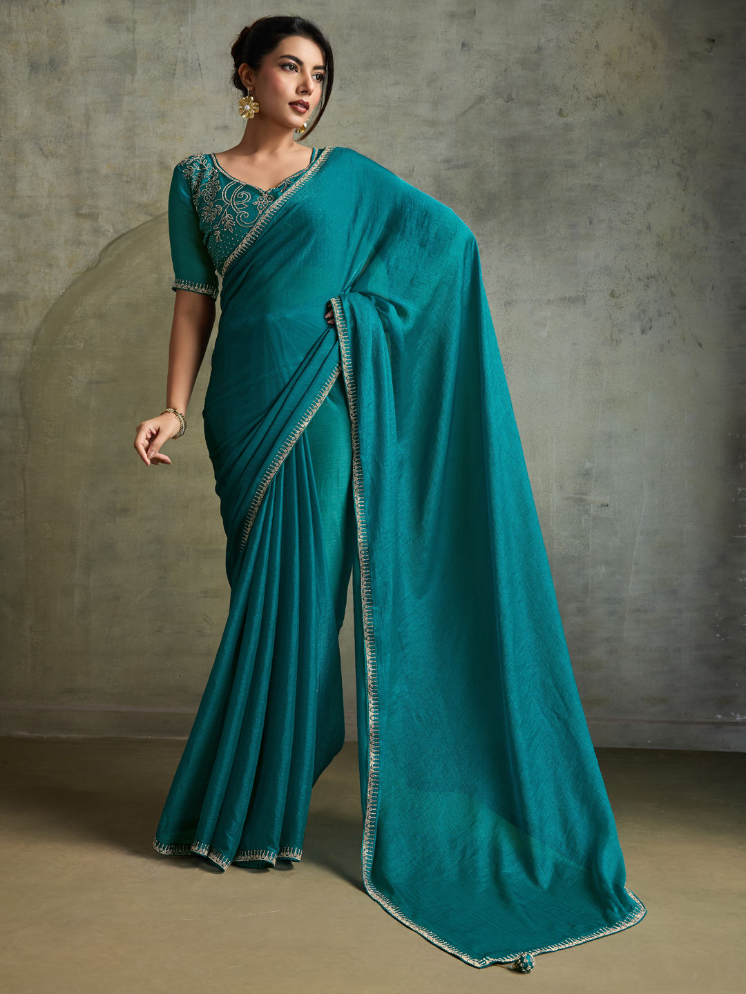 Blue color Saree in Chinon Silk fabric with Swarovski work