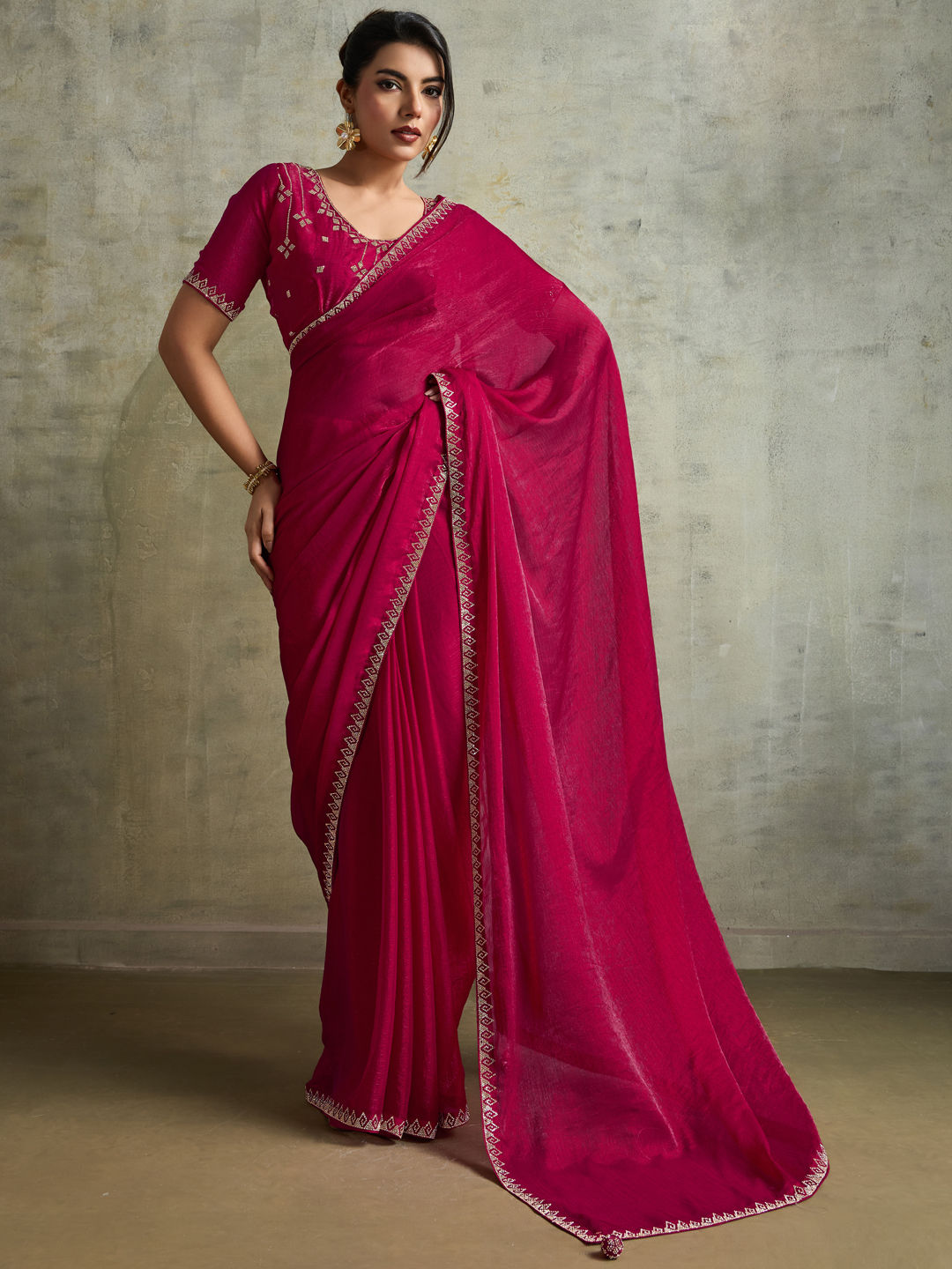 Chinon Silk Festive Saree in Pink and Majenta with Swarovski work