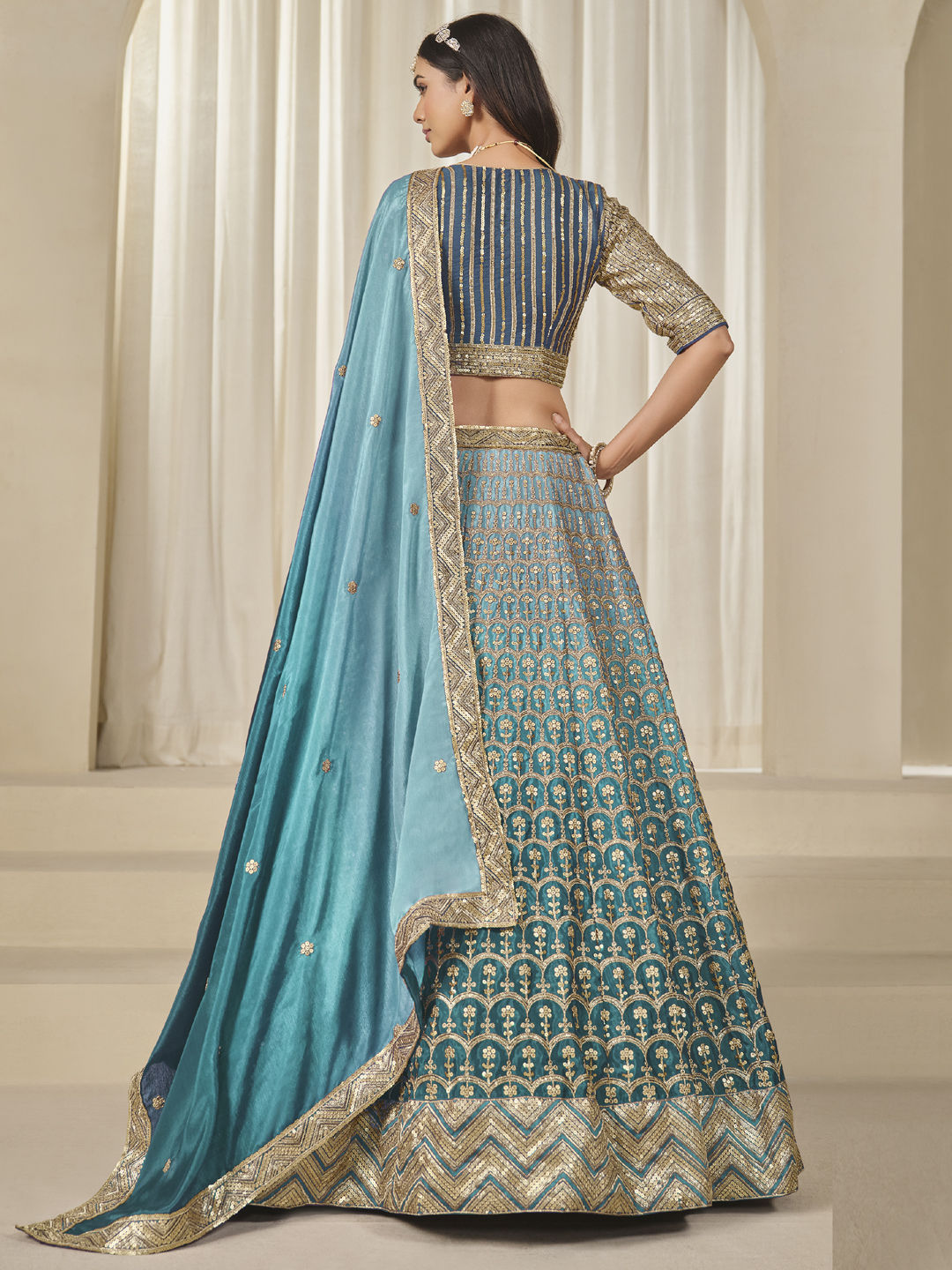 Blue color Lehenga in Chinon Silk fabric with Embroidered, Sequence, Thread, Zari work