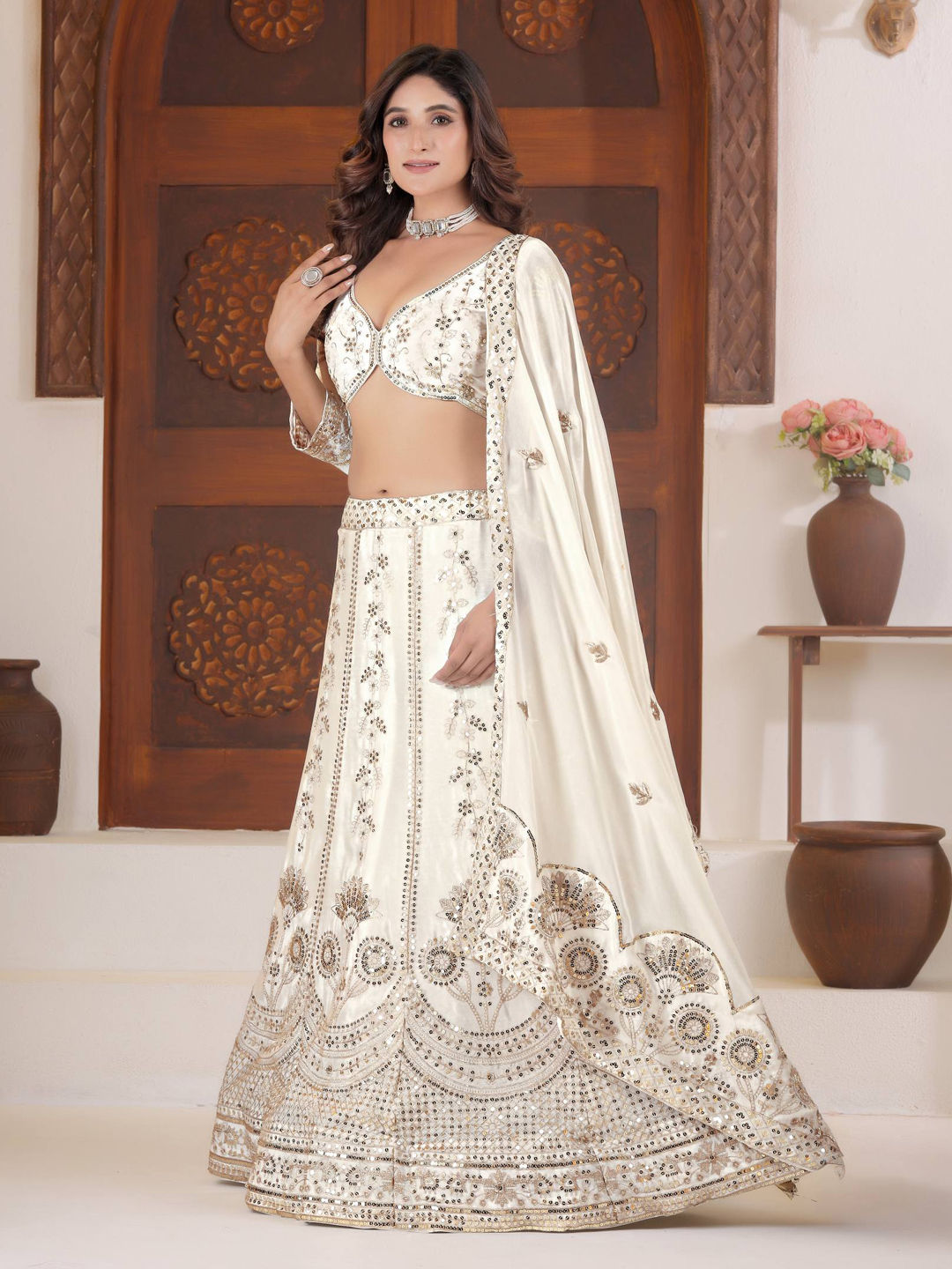 Chinon Silk Reception Lehenga