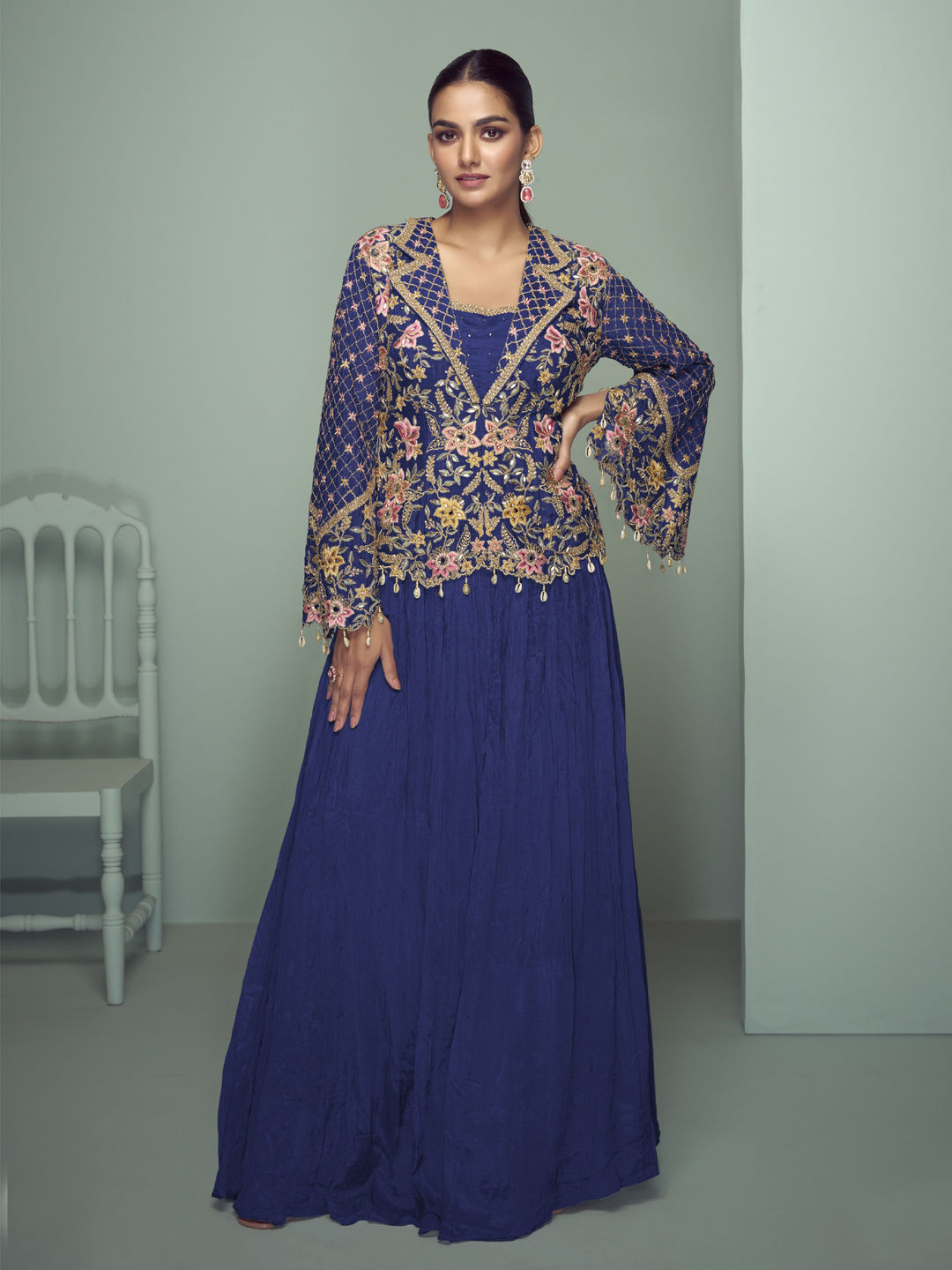 Blue color Long Lehenga Choli in Chinon Silk fabric with Embroidered, Thread work