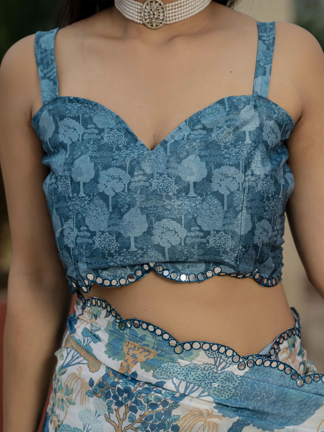 Chinon Silk Festive Readymade Saree in Blue with Digital Print work