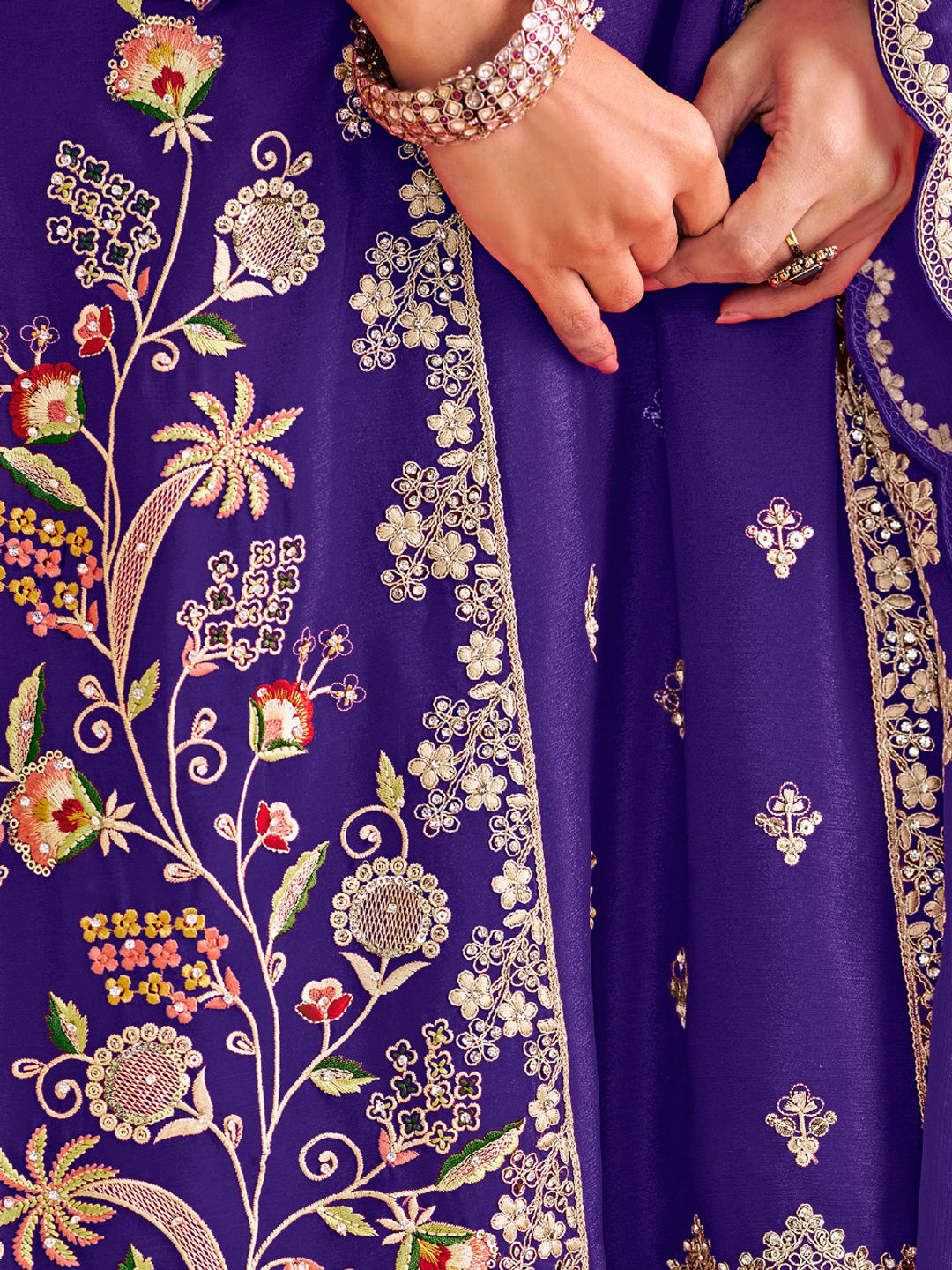 Blue color Salwar Kameez in Chinon Silk fabric with Embroidered, Stone work