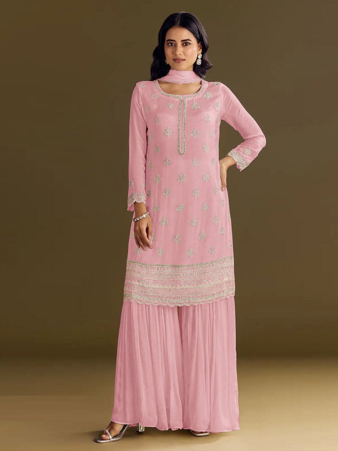 Pink and Majenta color Salwar Kameez in Chinon Silk fabric with Embroidered, Sequence work