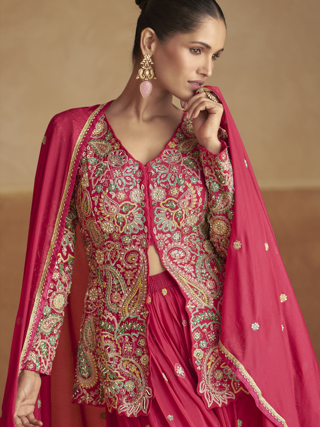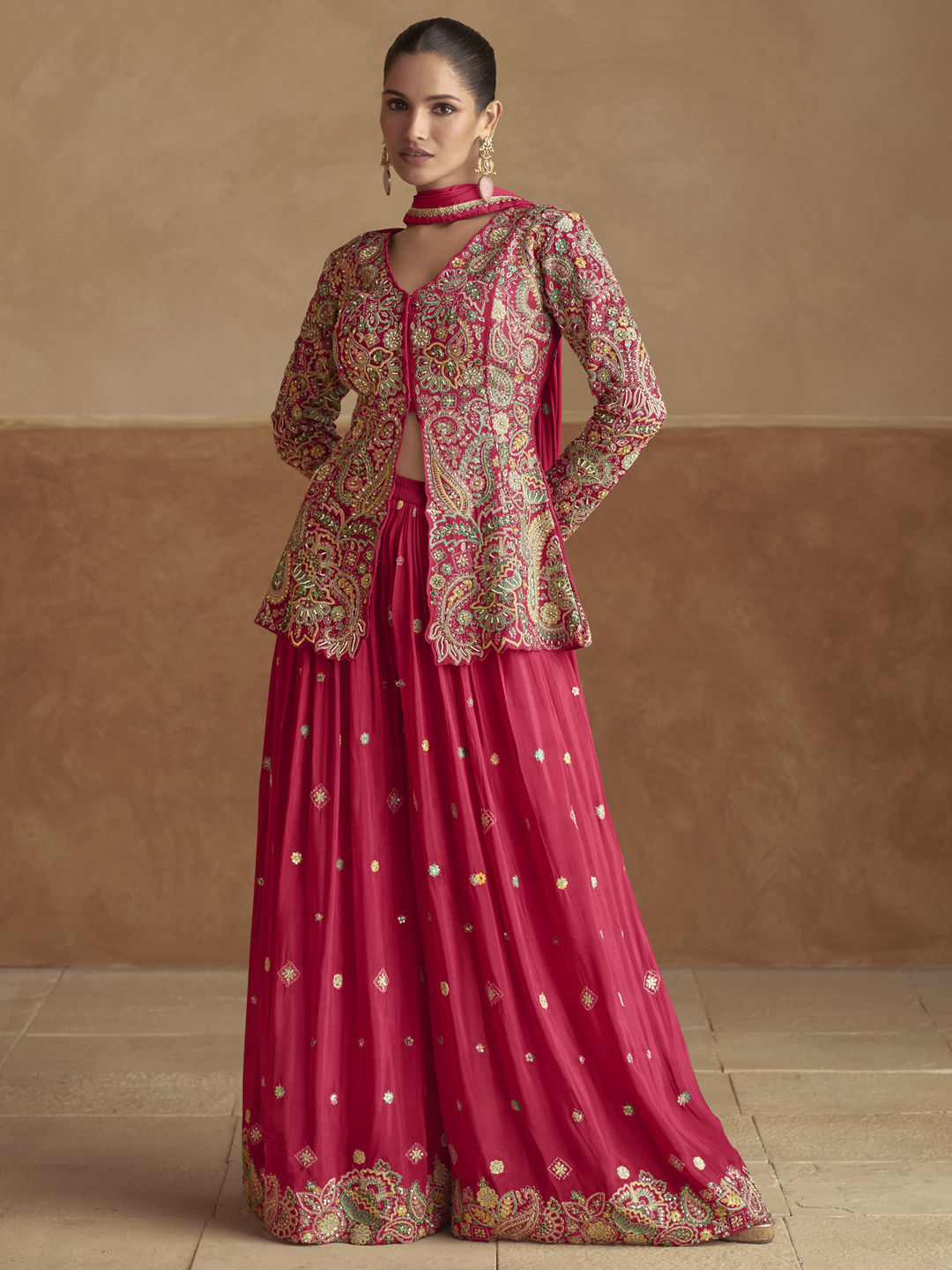 Pink and Majenta color Salwar Kameez in Chinon Silk fabric with Embroidered, Sequence, Thread work
