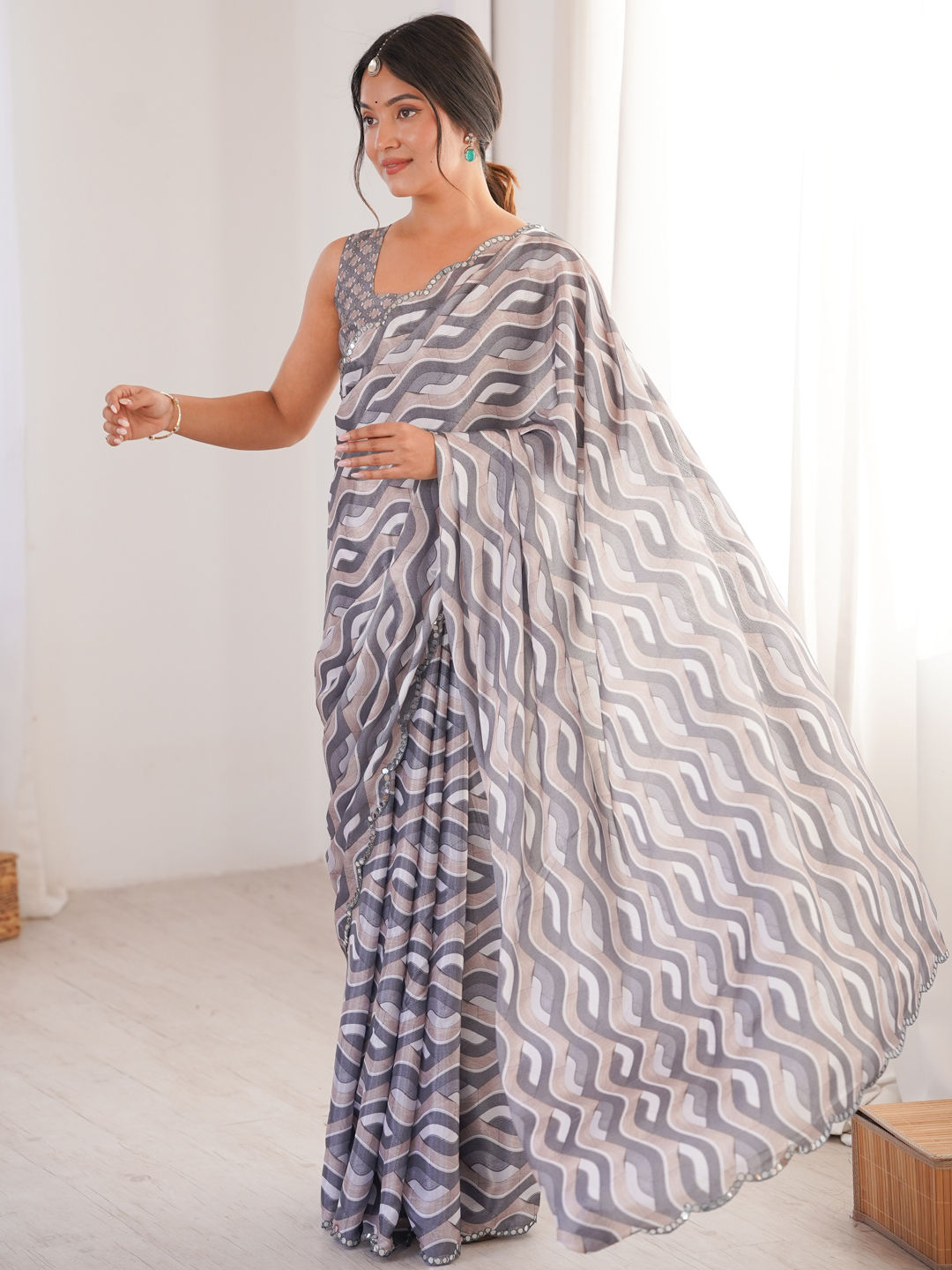 in Black and Grey with Mirror work