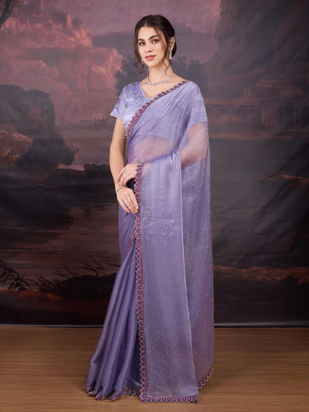 Purple and Violet color Saree in Chinon Silk fabric with Bugle Beads work