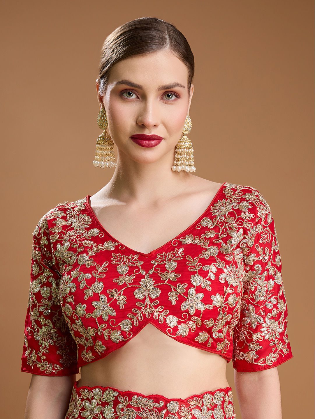 in Red and Maroon with Embroidered work