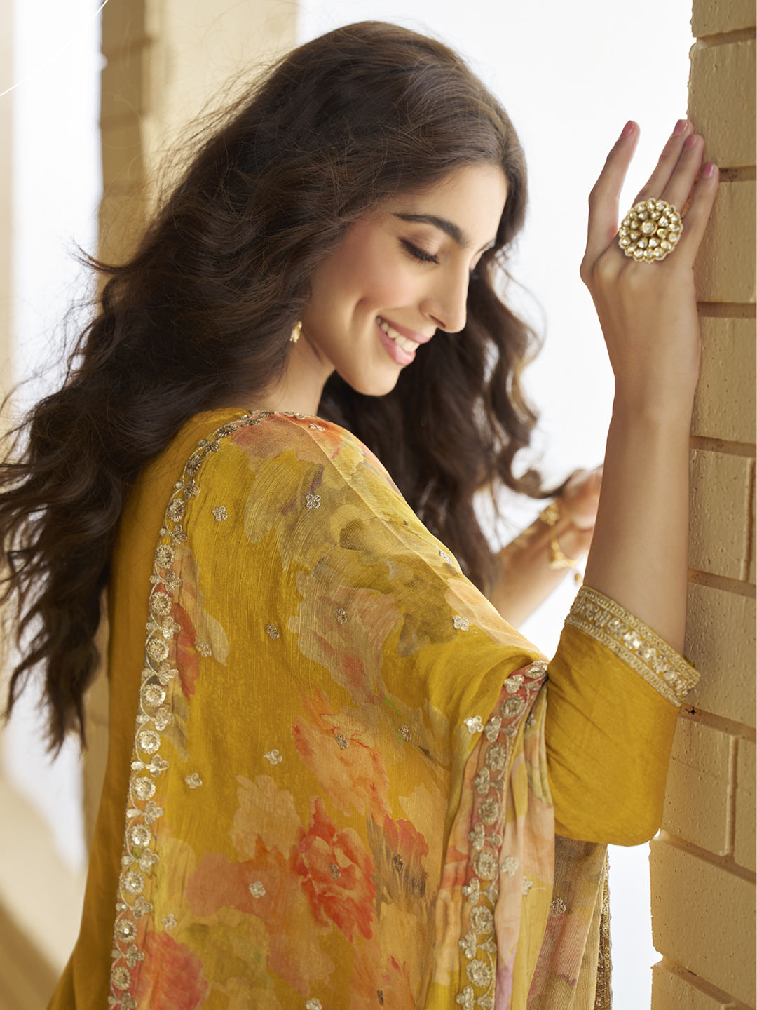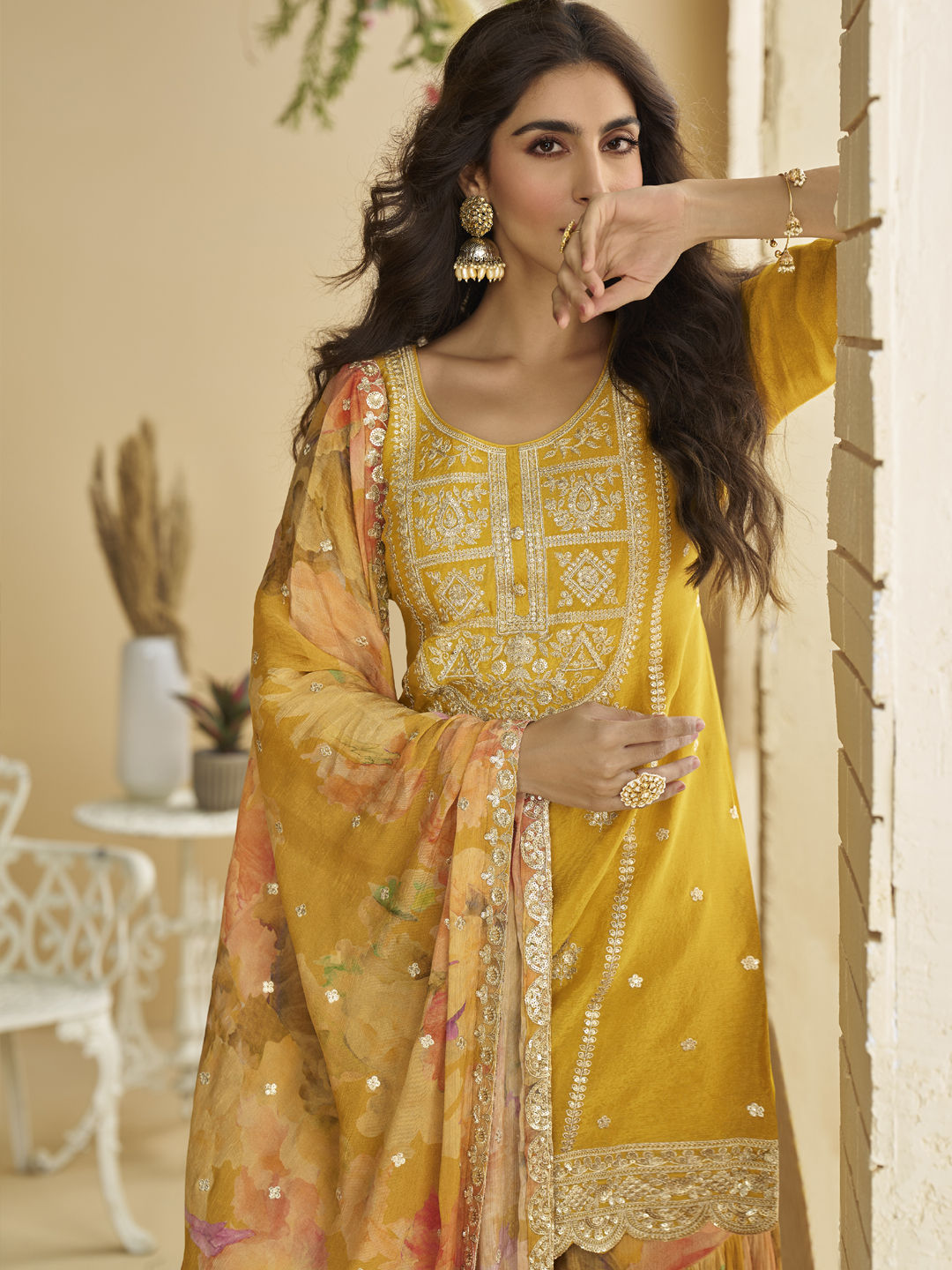 in Yellow with Embroidered work