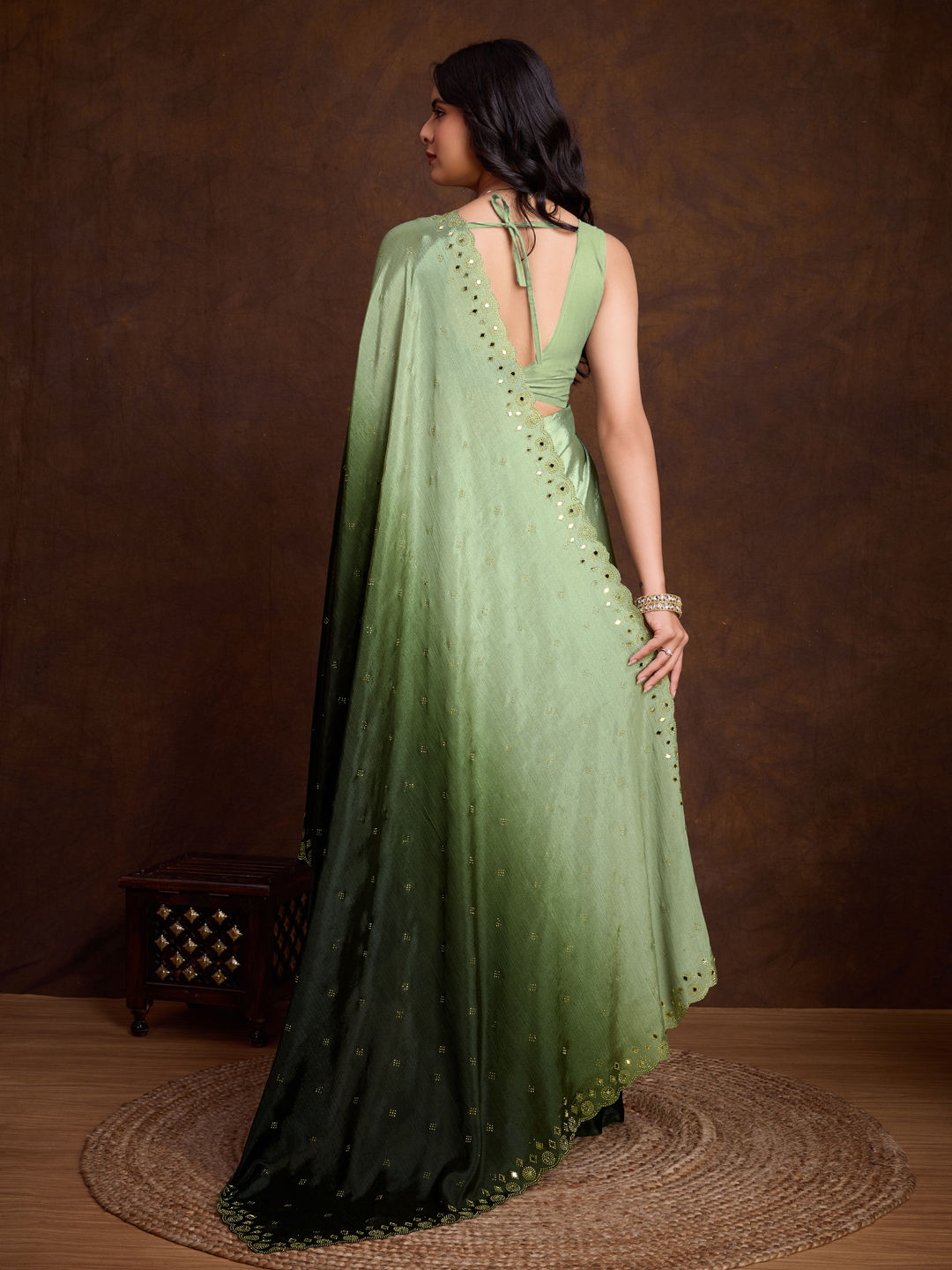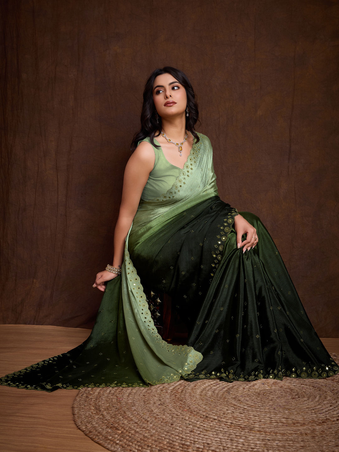 Black and Grey, Green color Saree in Chinon Silk fabric with Mirror, Swarovski work