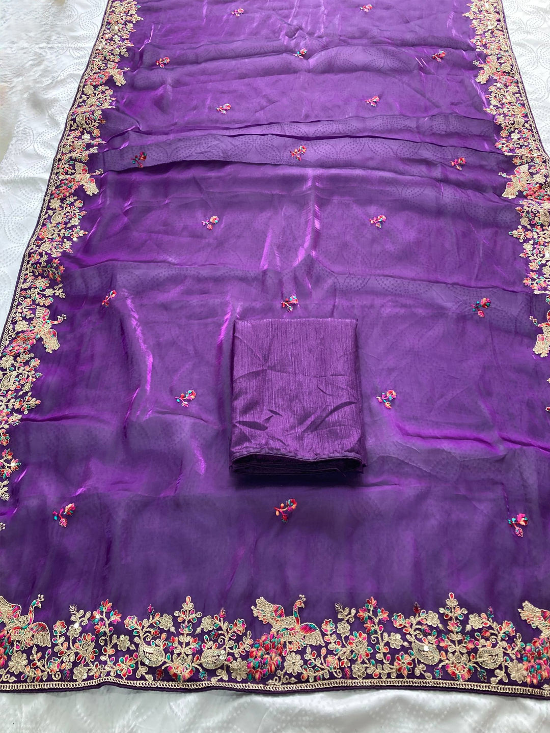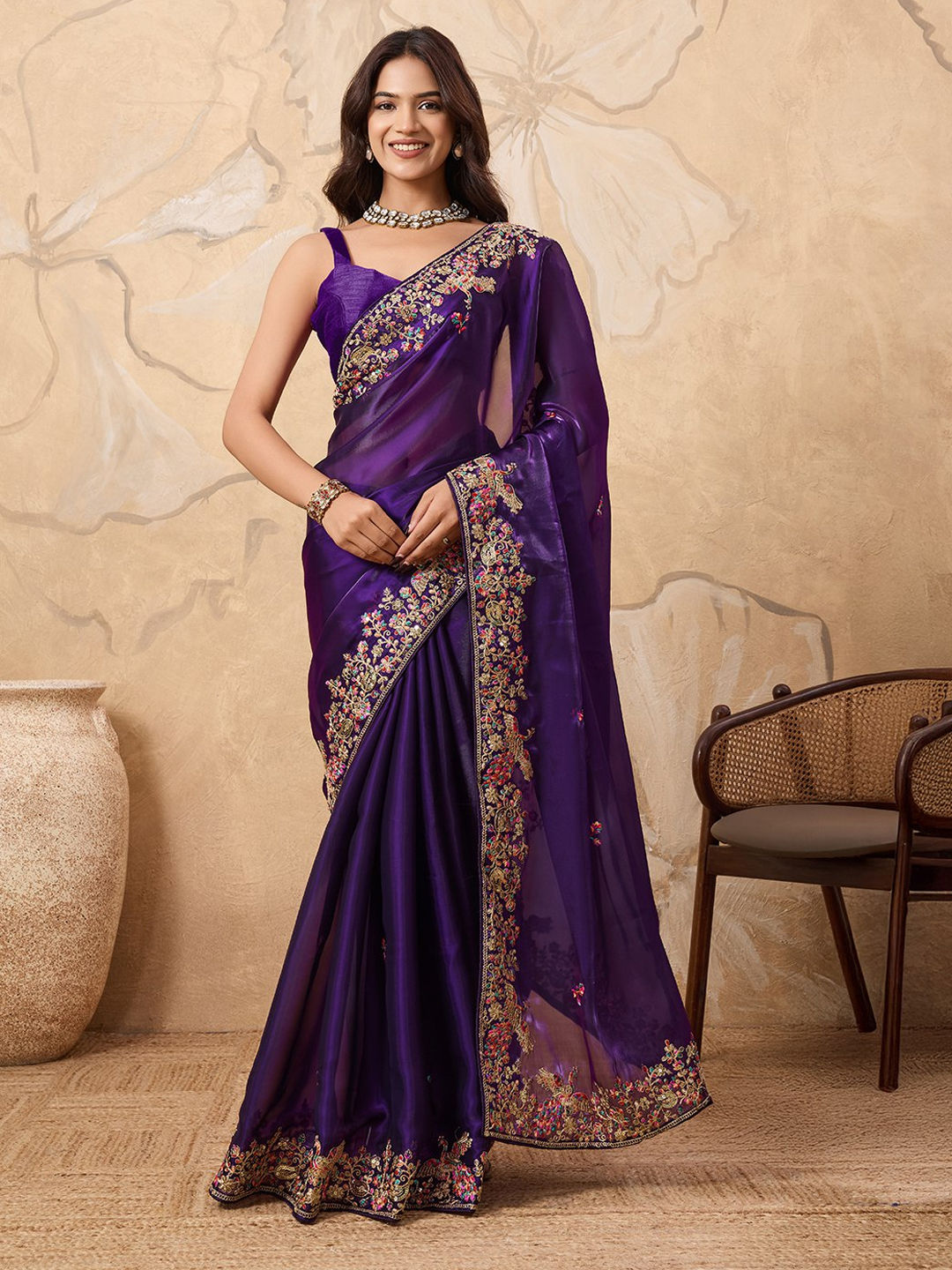 Purple and Violet color Saree in Chinon Silk fabric with Embroidered, Sequence work