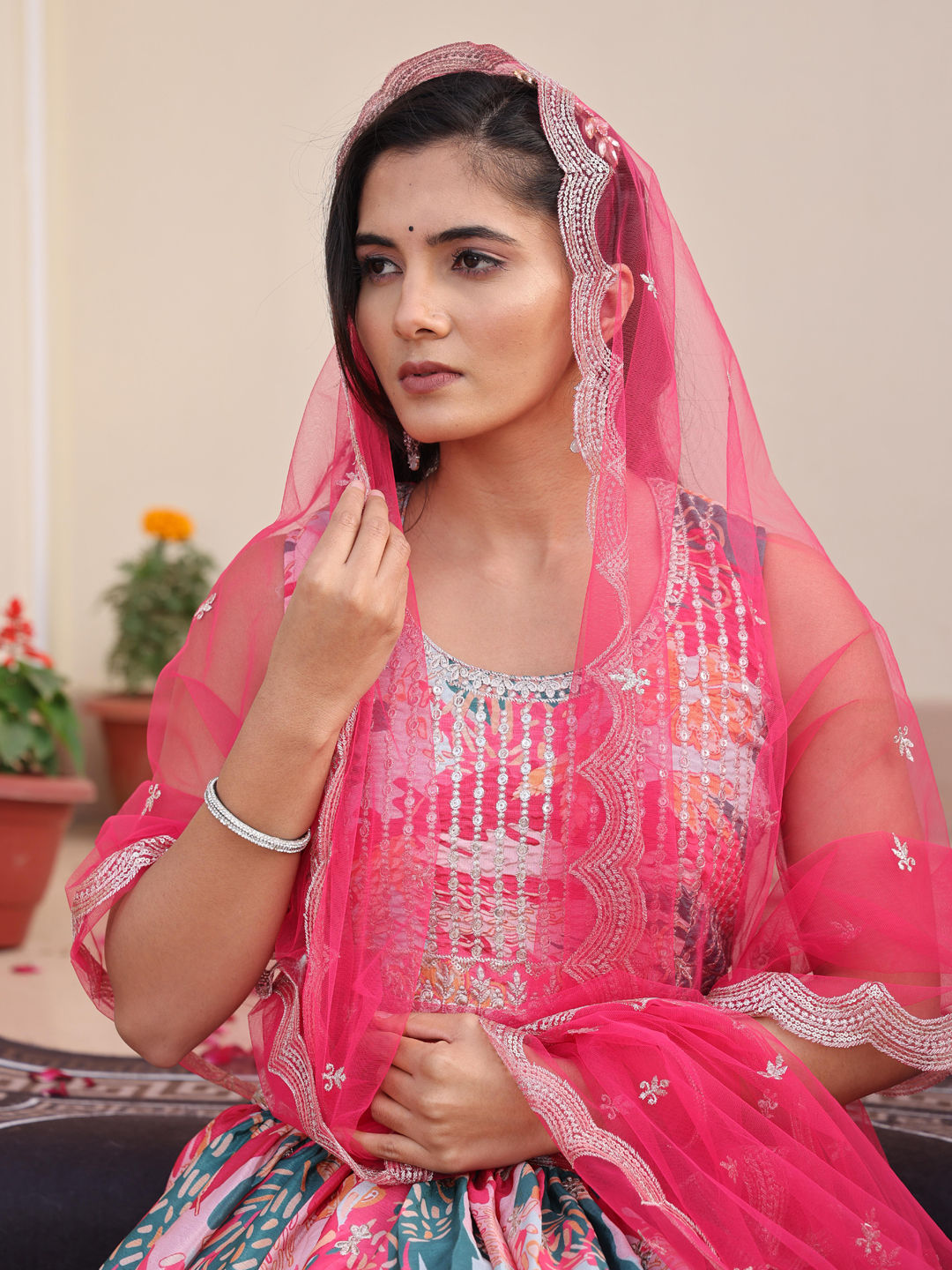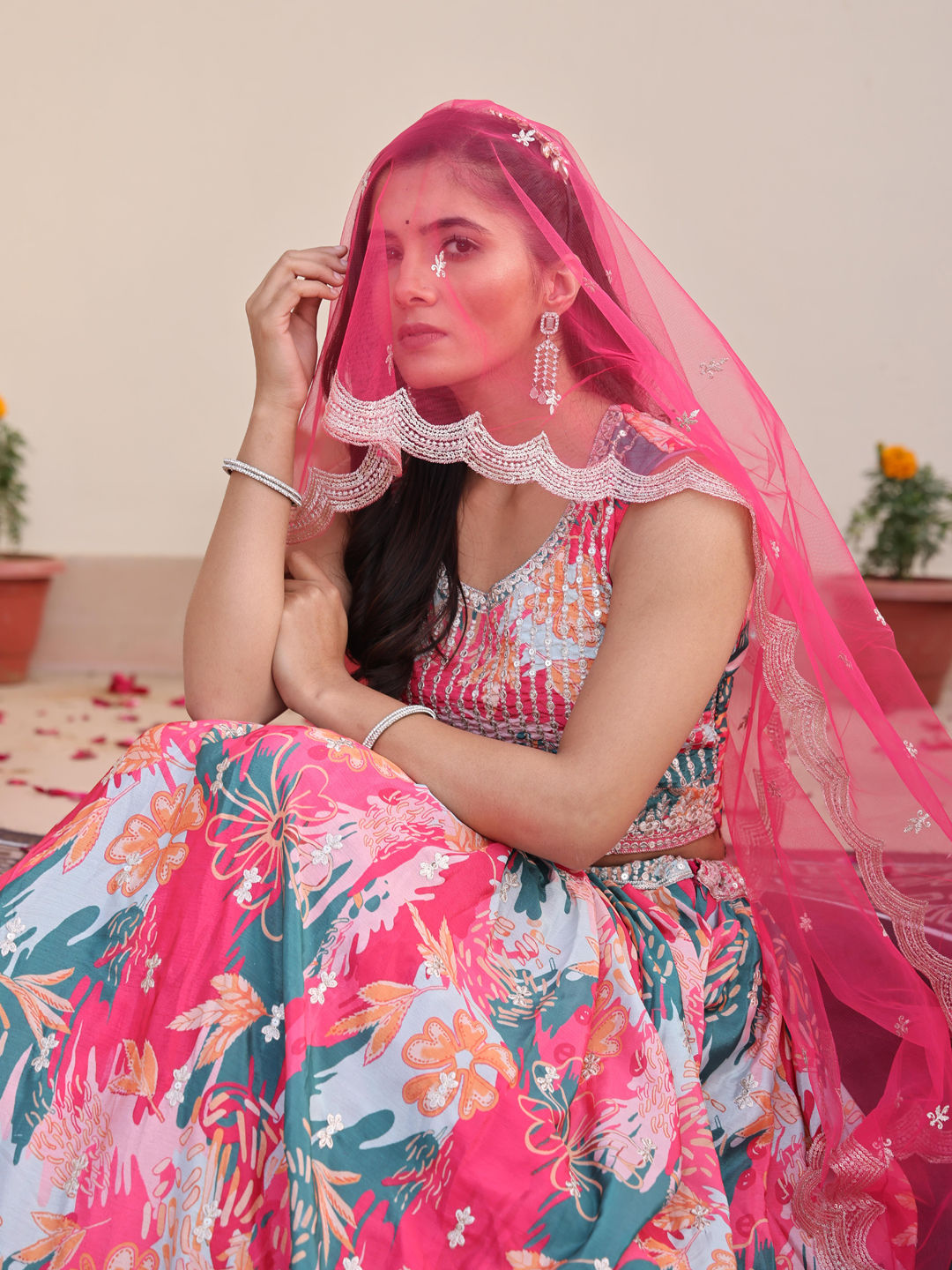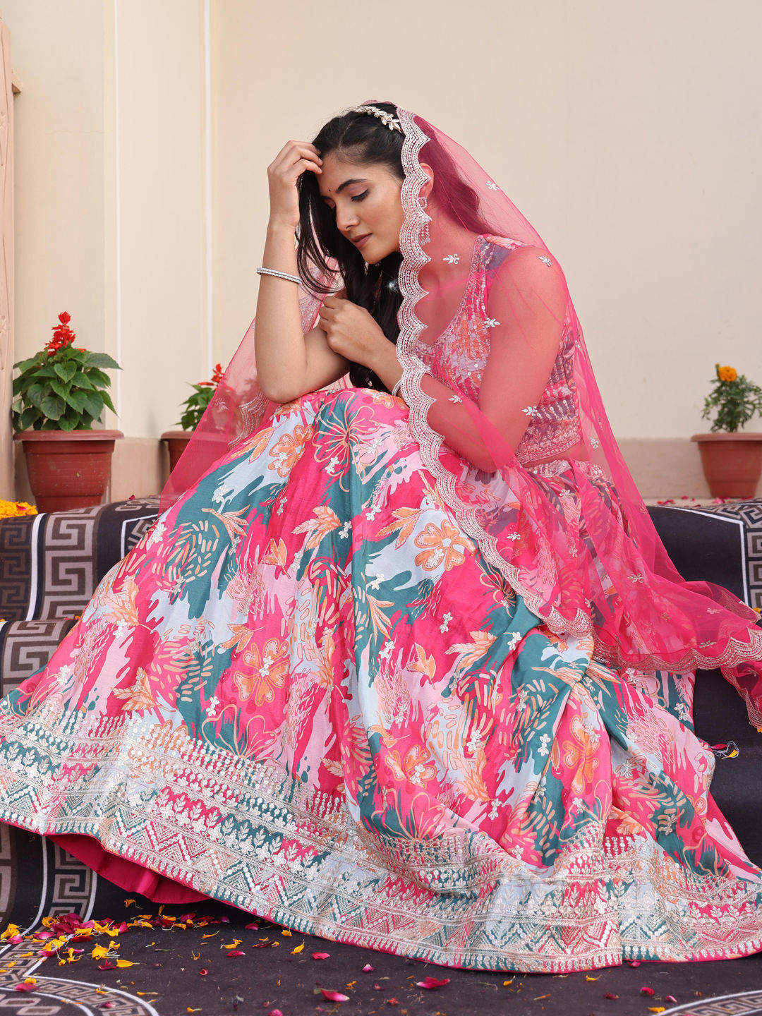 Net Reception Lehenga in Pink and Majenta with Thread work