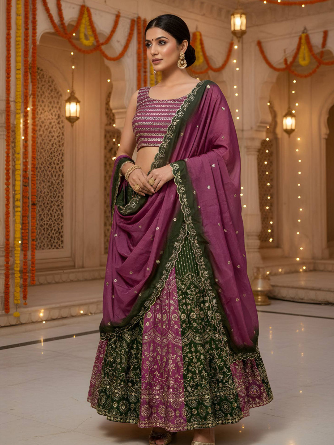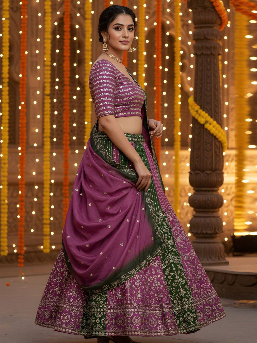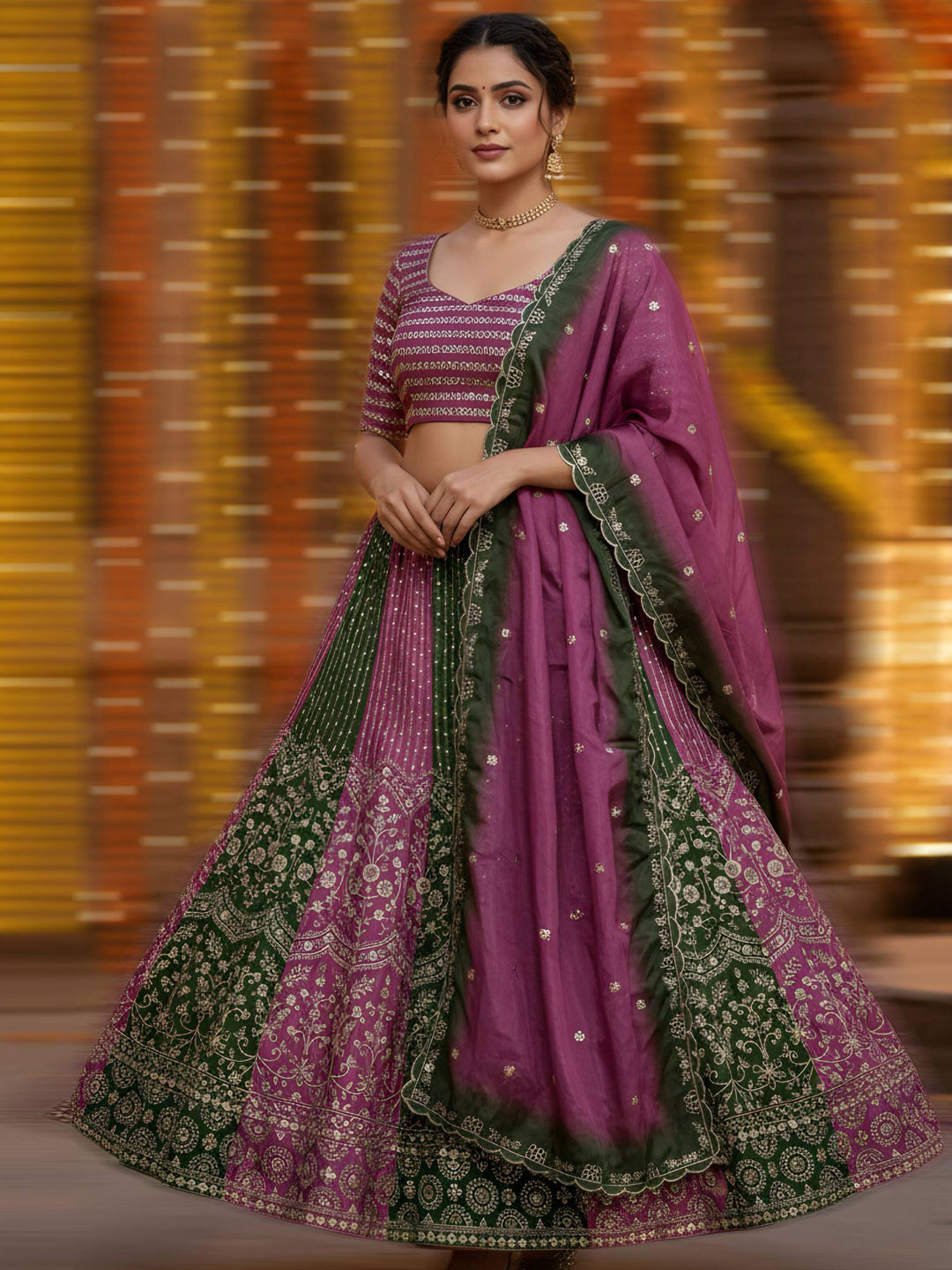 Chinon Silk Wedding Lehenga in Pink and Majenta with Sequence work