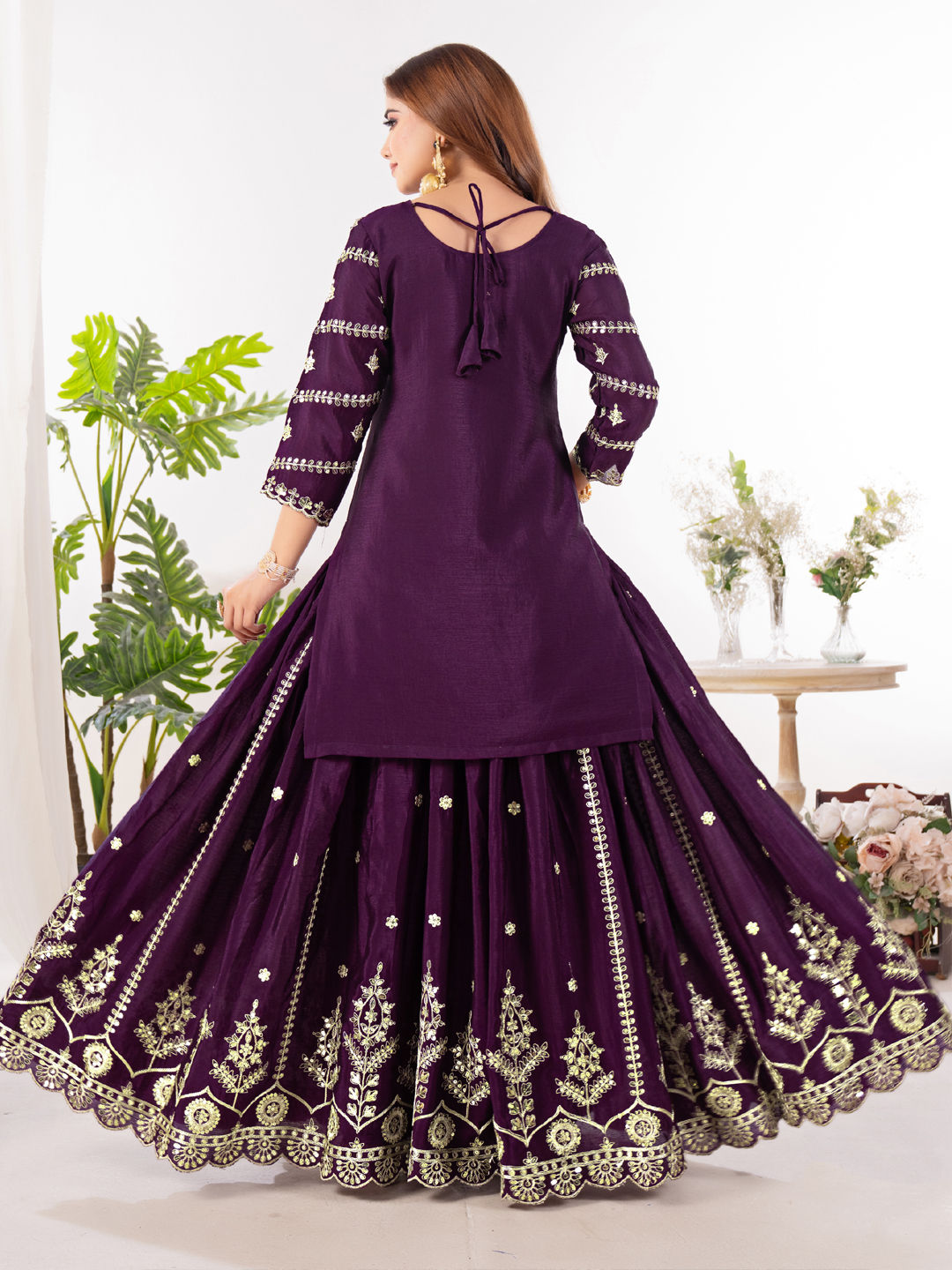 Purple and Violet color Salwar Kameez in Chinon Silk fabric with Embroidered, Sequence, Thread work