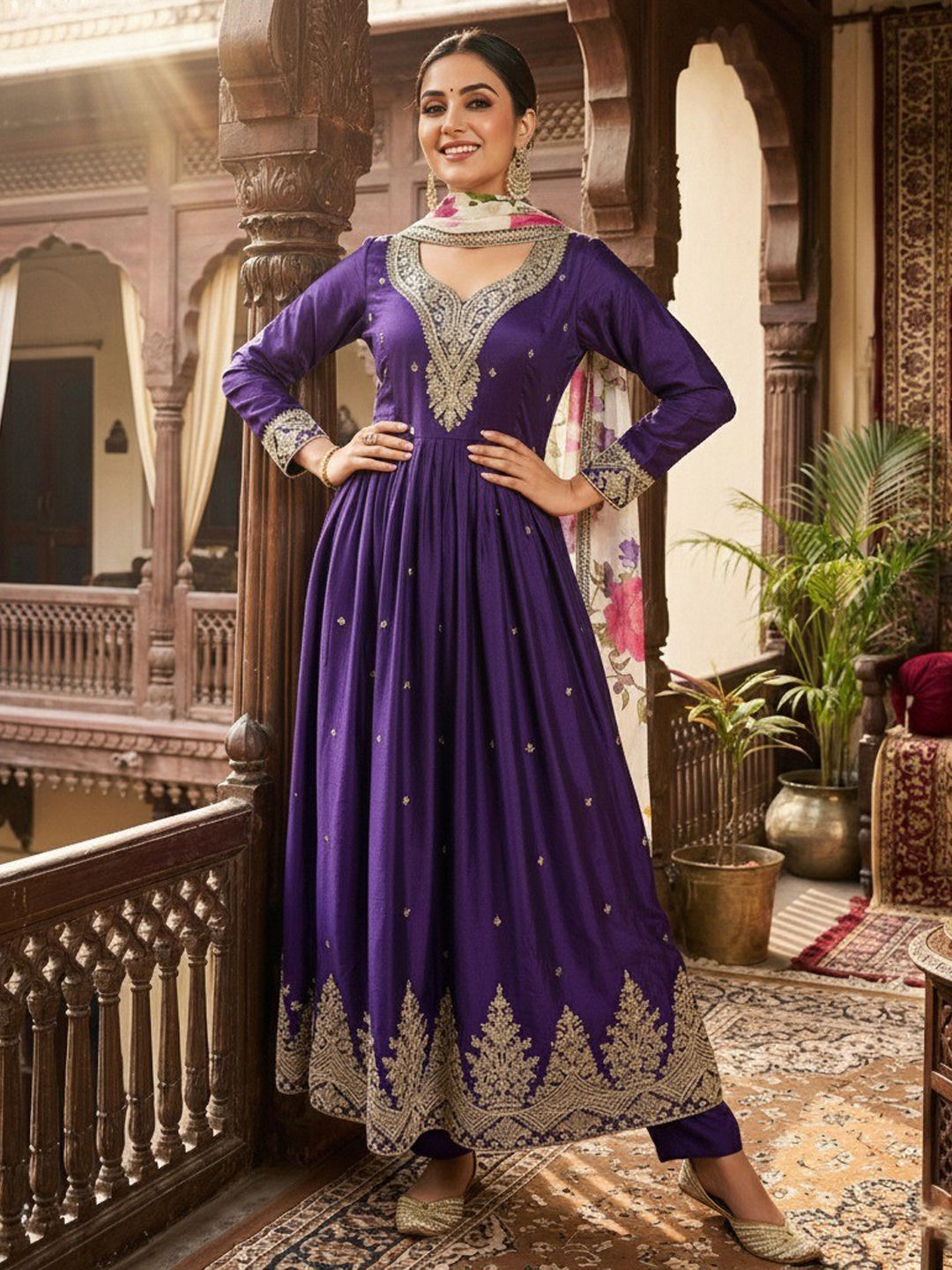 in Purple and Violet with Zari work