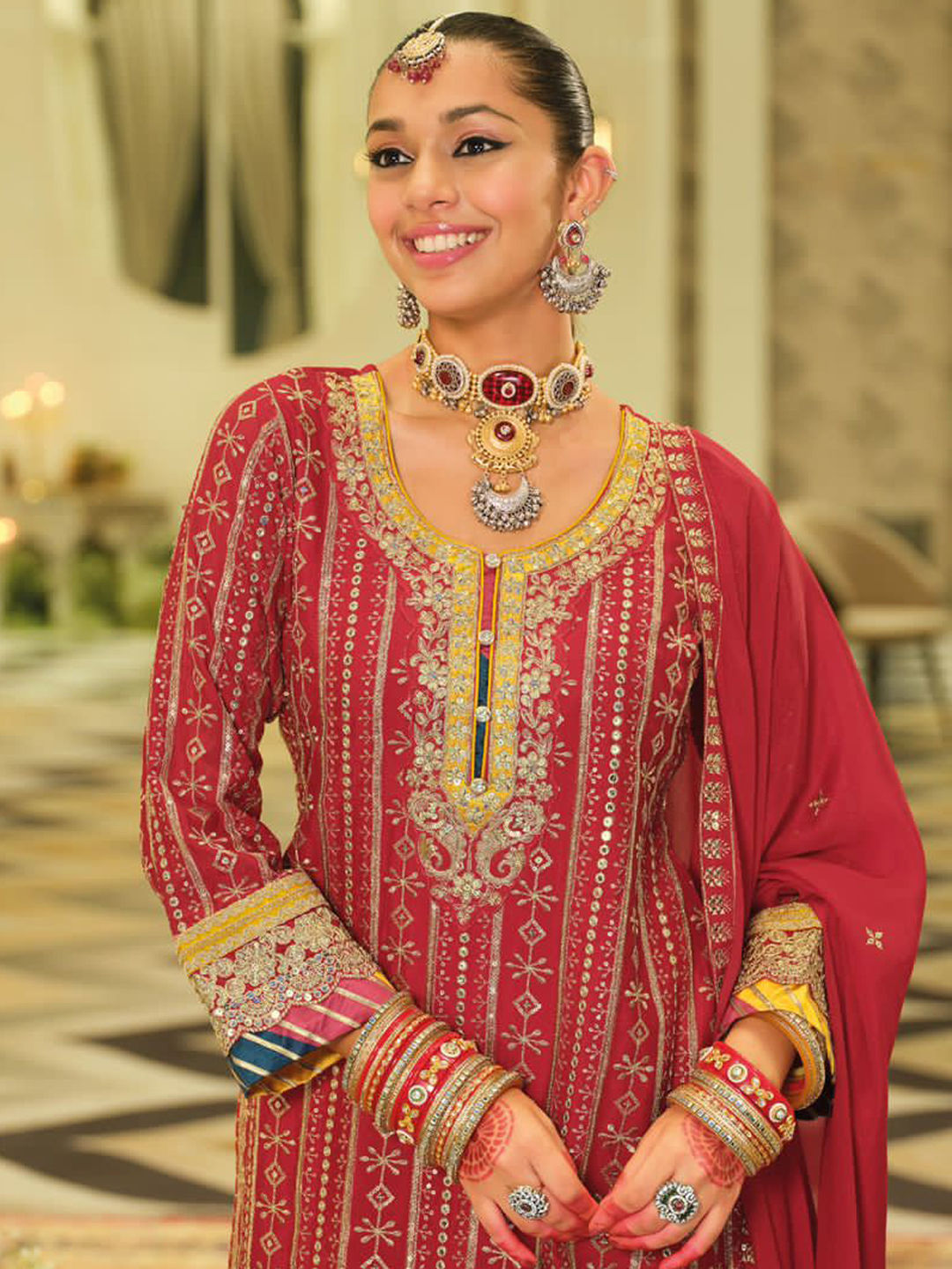 in Red and Maroon with Thread work