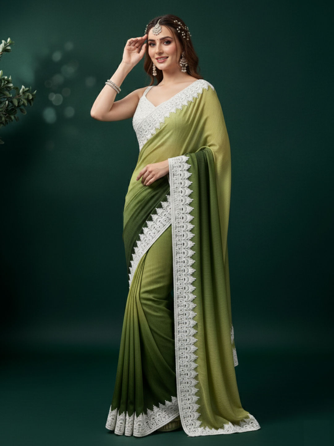 Green color Saree in Chinon Silk fabric with Embroidered, Resham, Thread work