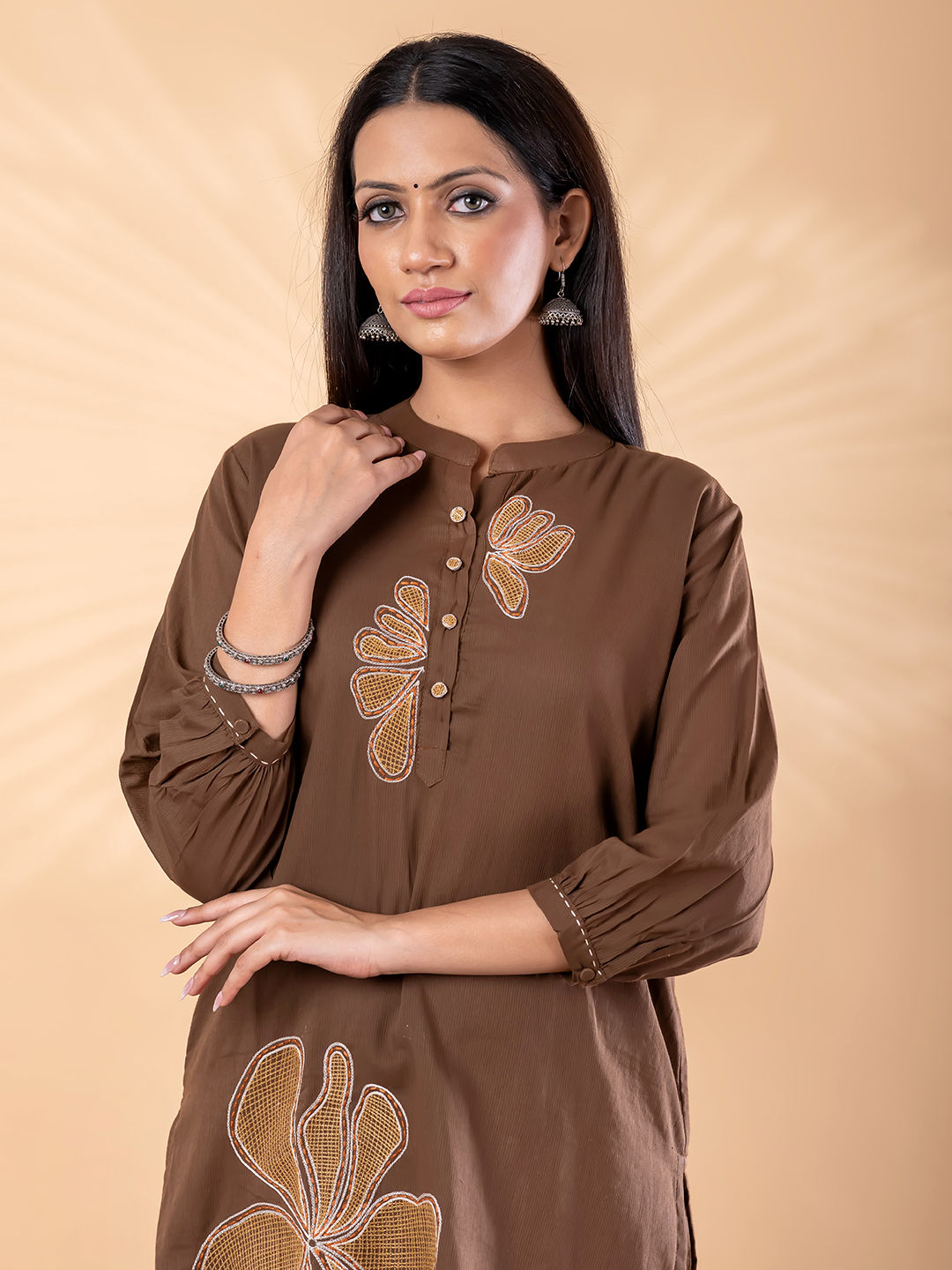 in Beige and Brown with Embroidered work