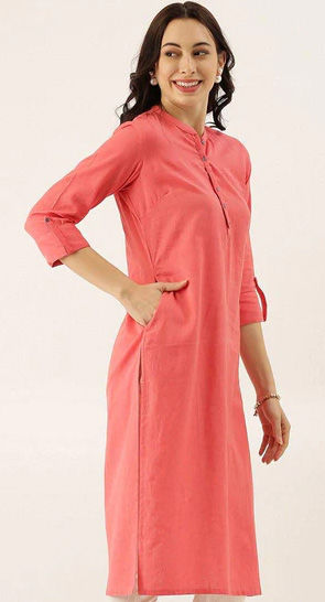 Cotton Casual Kurti in Pink and Majenta with Thread work