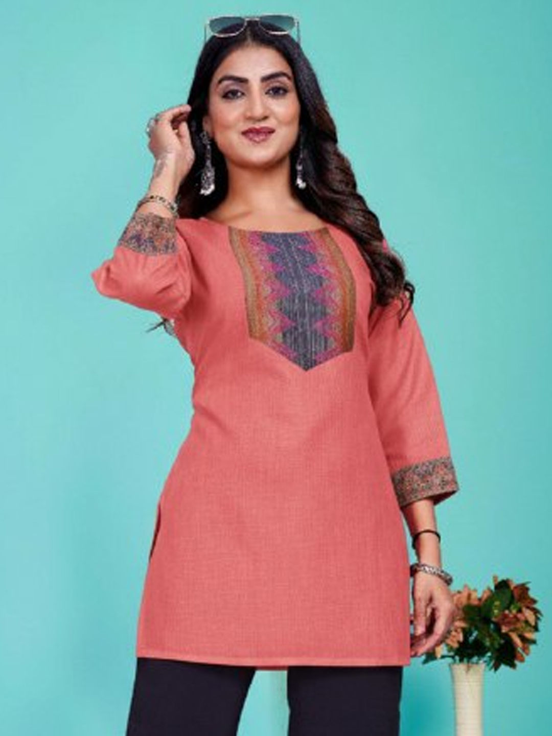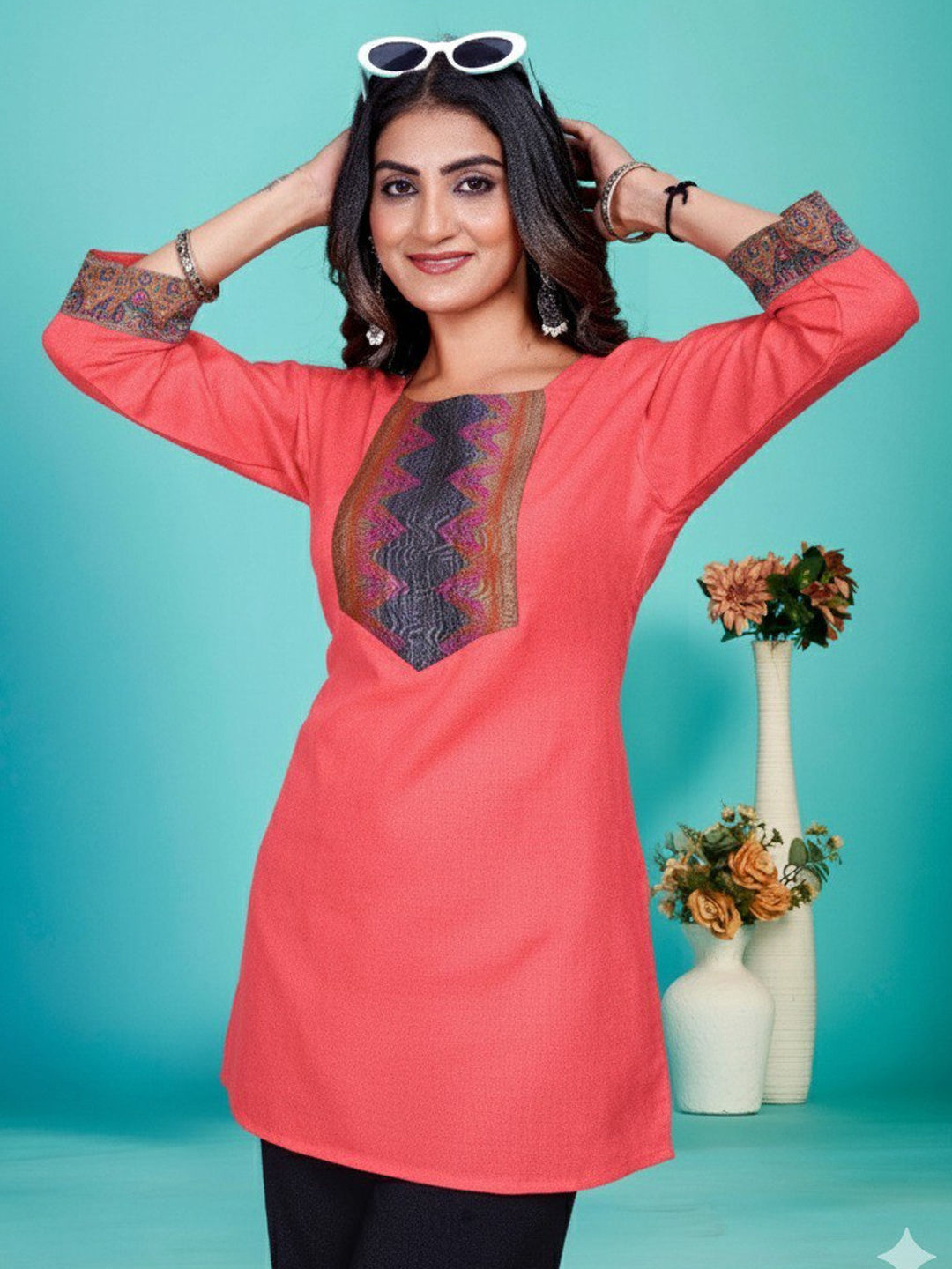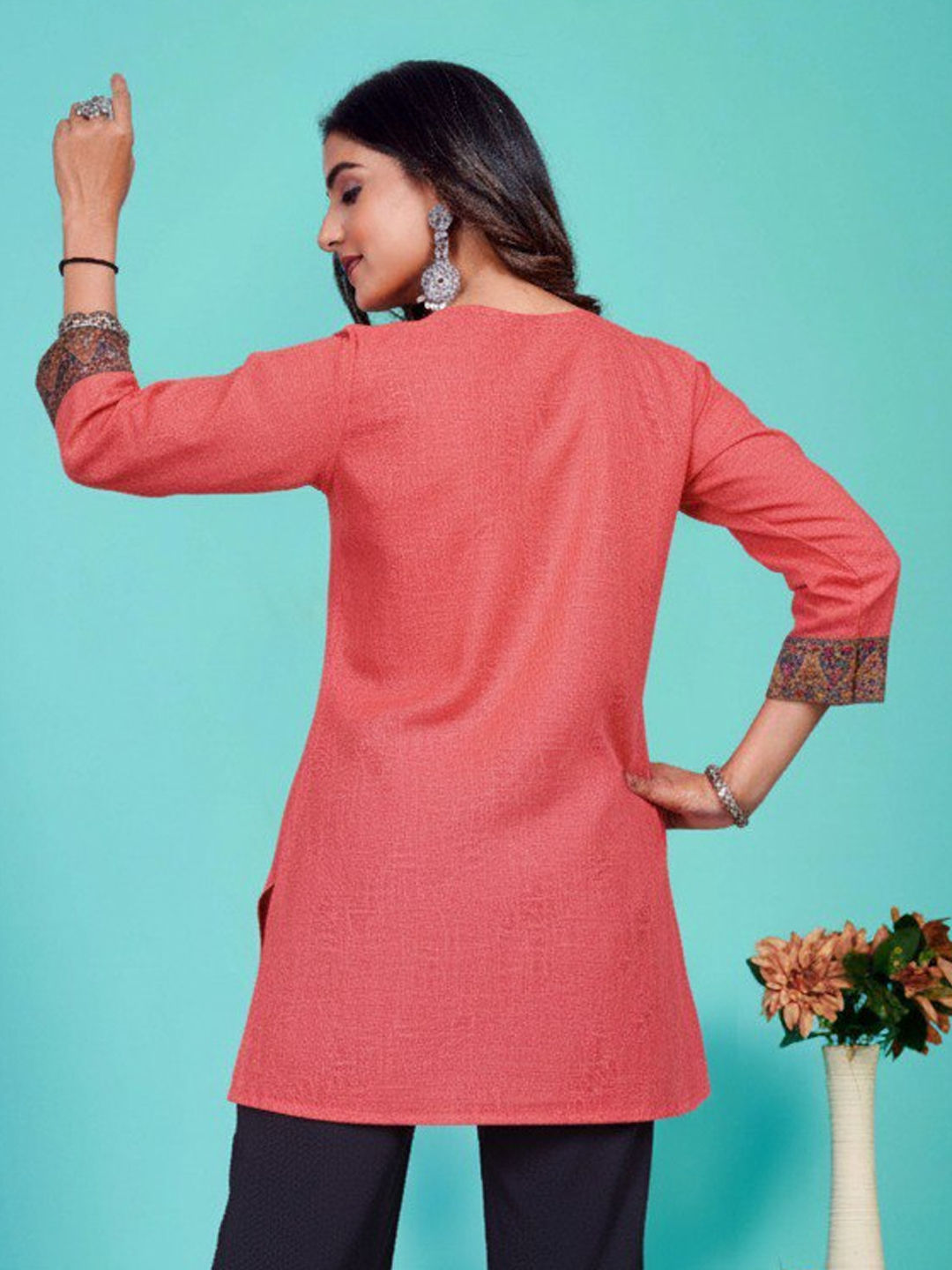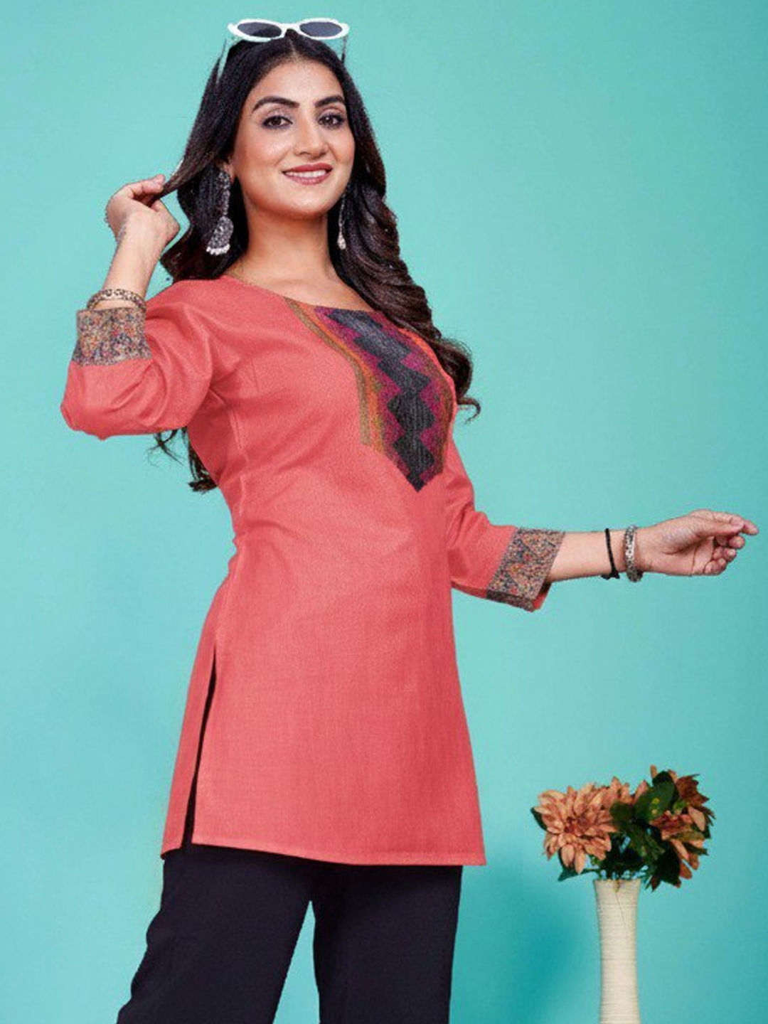 Pink and Majenta color Kurti in Cotton fabric with Weaving work