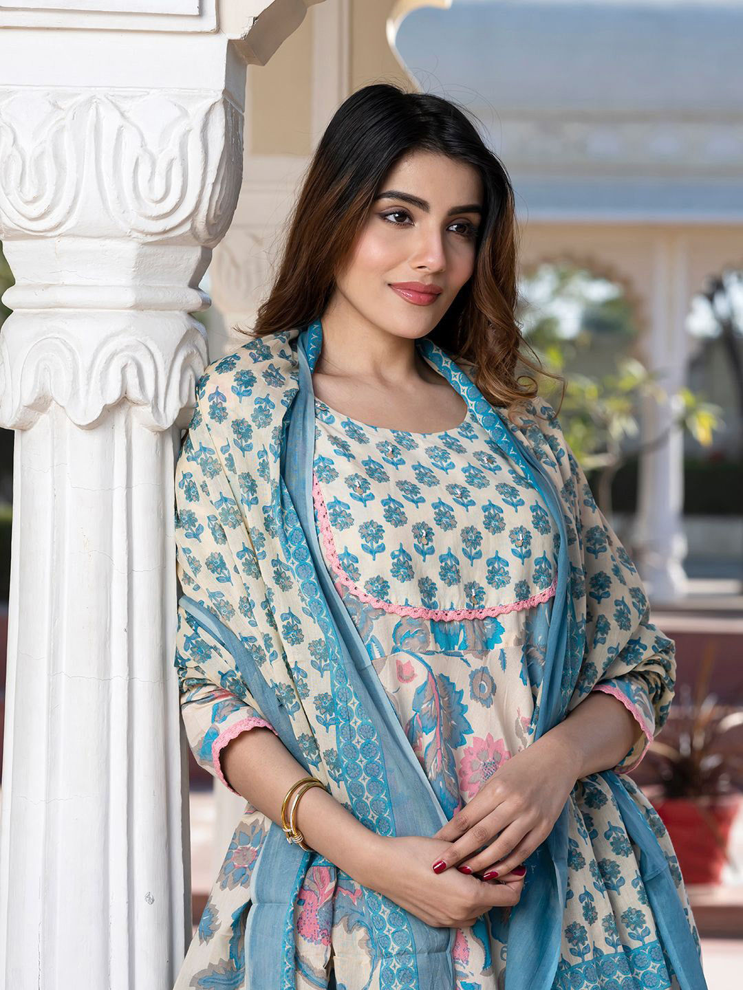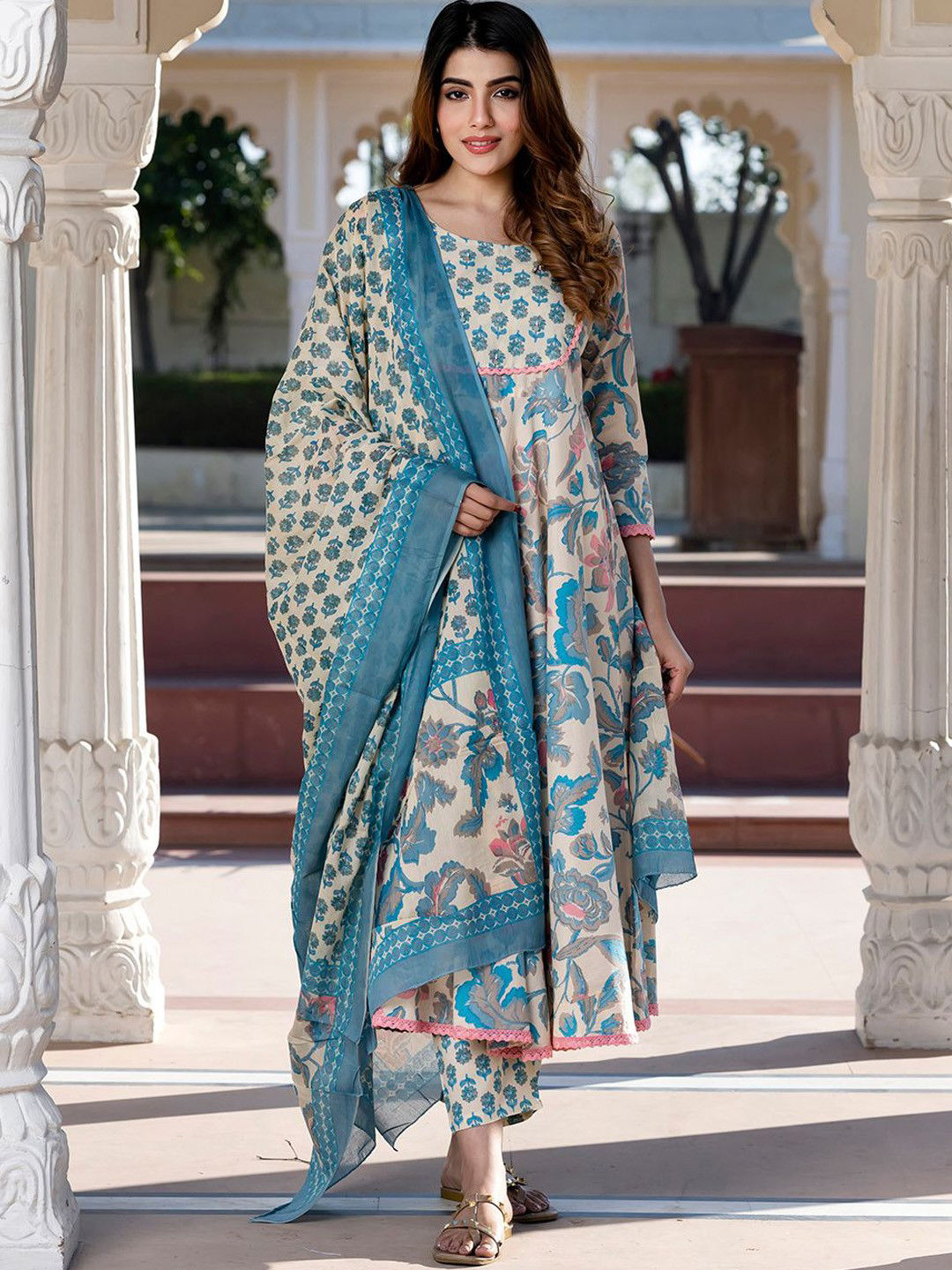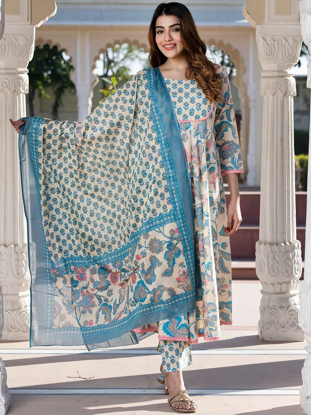 Multicolor color Salwar Kameez in Cotton fabric with Floral, Printed work