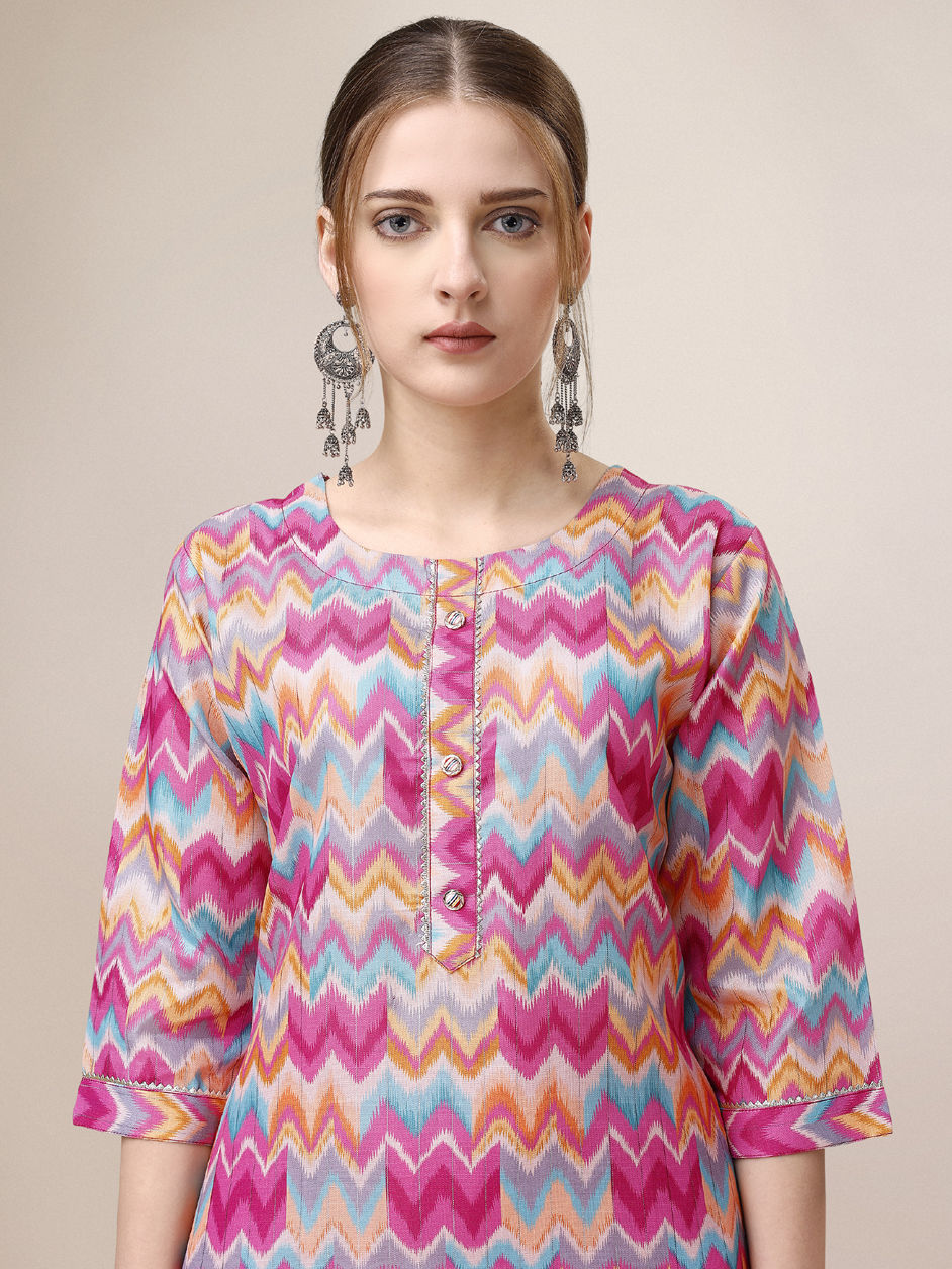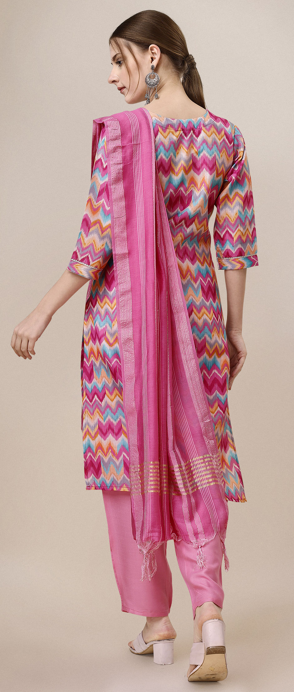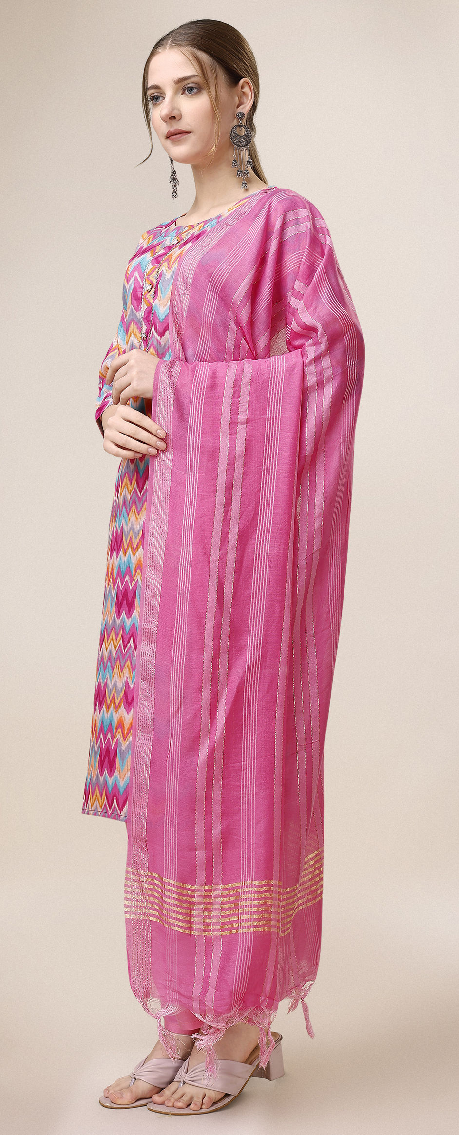 Pink and Majenta color Salwar Kameez in Cotton fabric with Printed work
