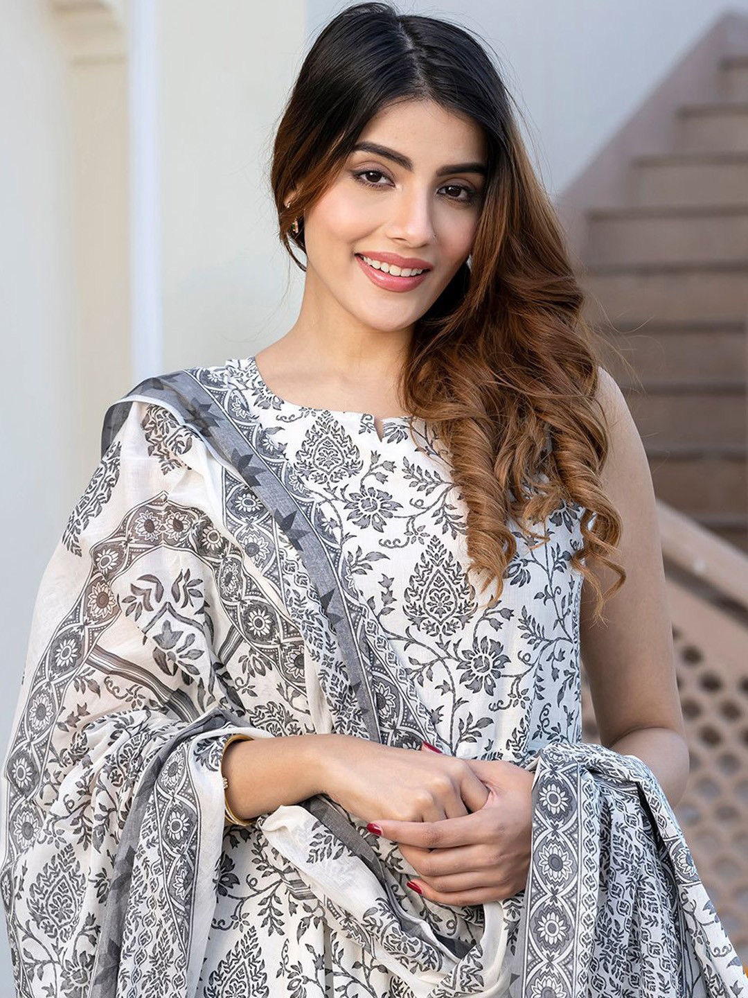 White and Off White color Salwar Kameez in Cotton fabric with Floral, Printed work