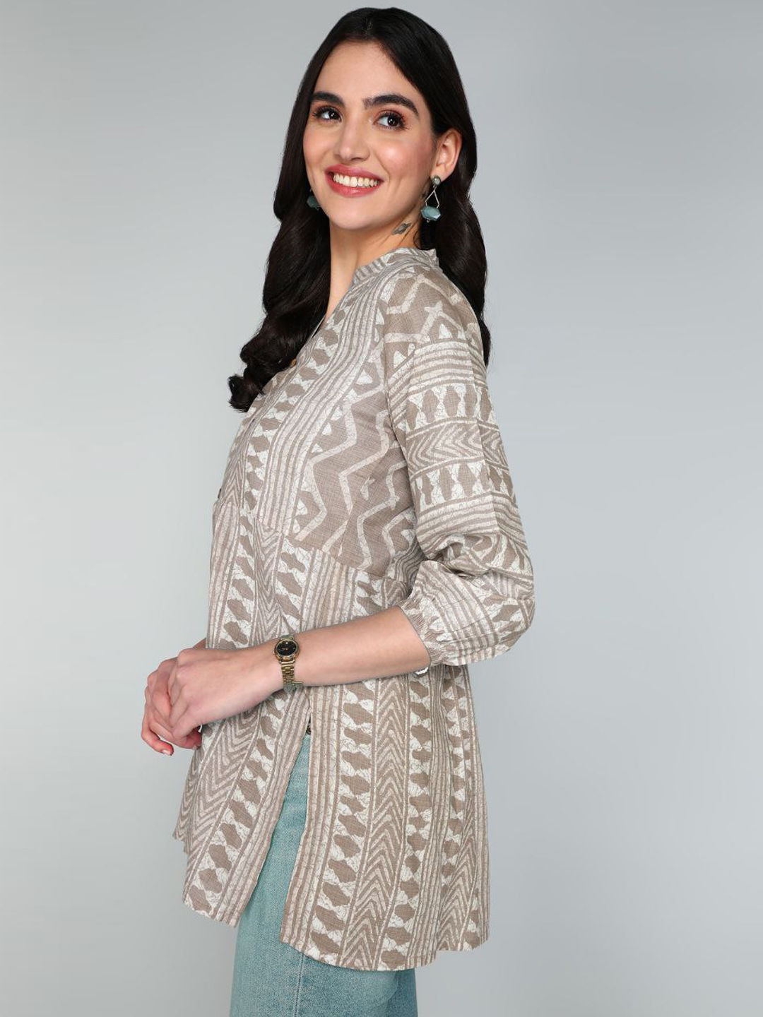 Beige and Brown color Tops and Shirts in Cotton fabric with Printed work