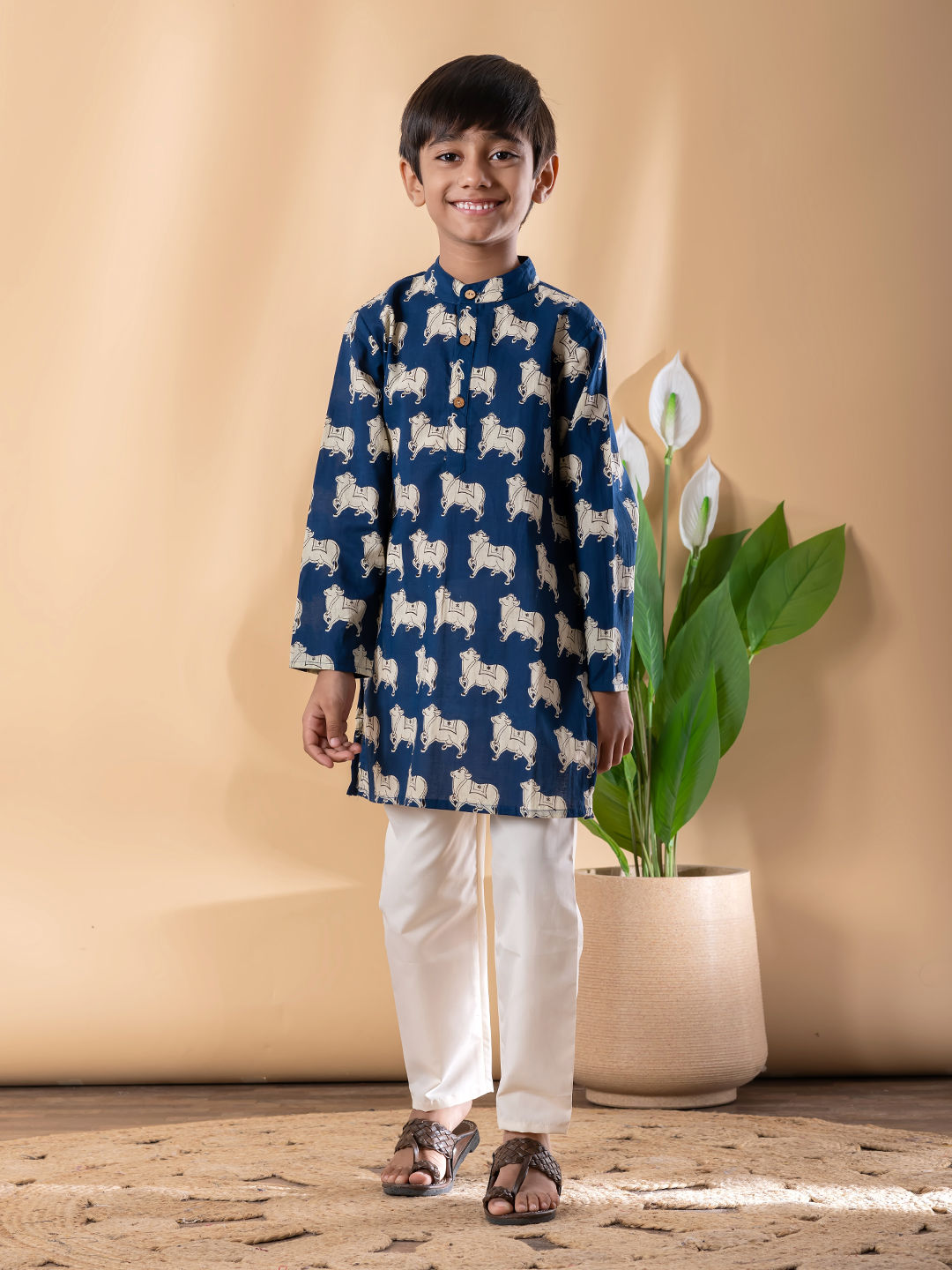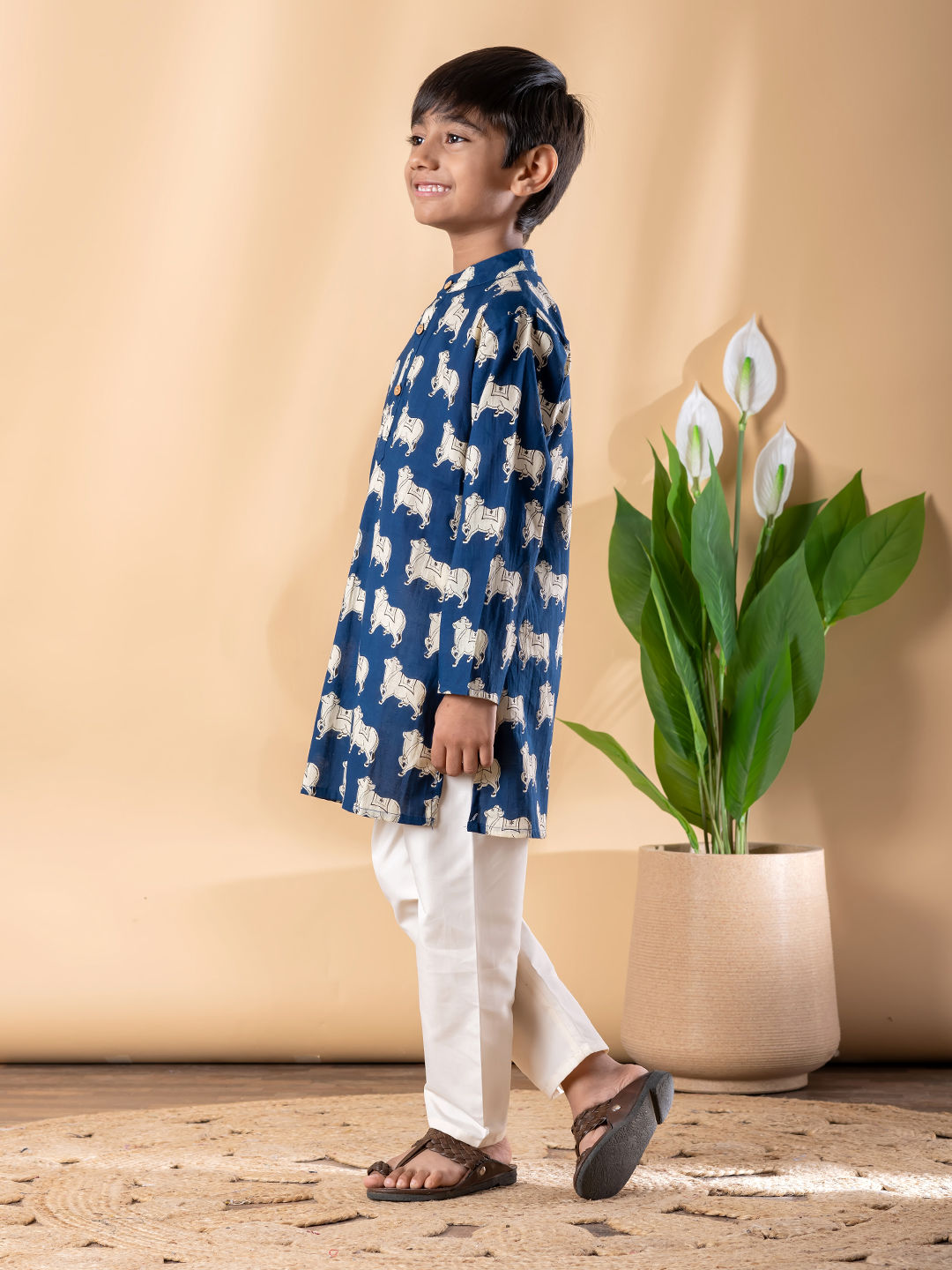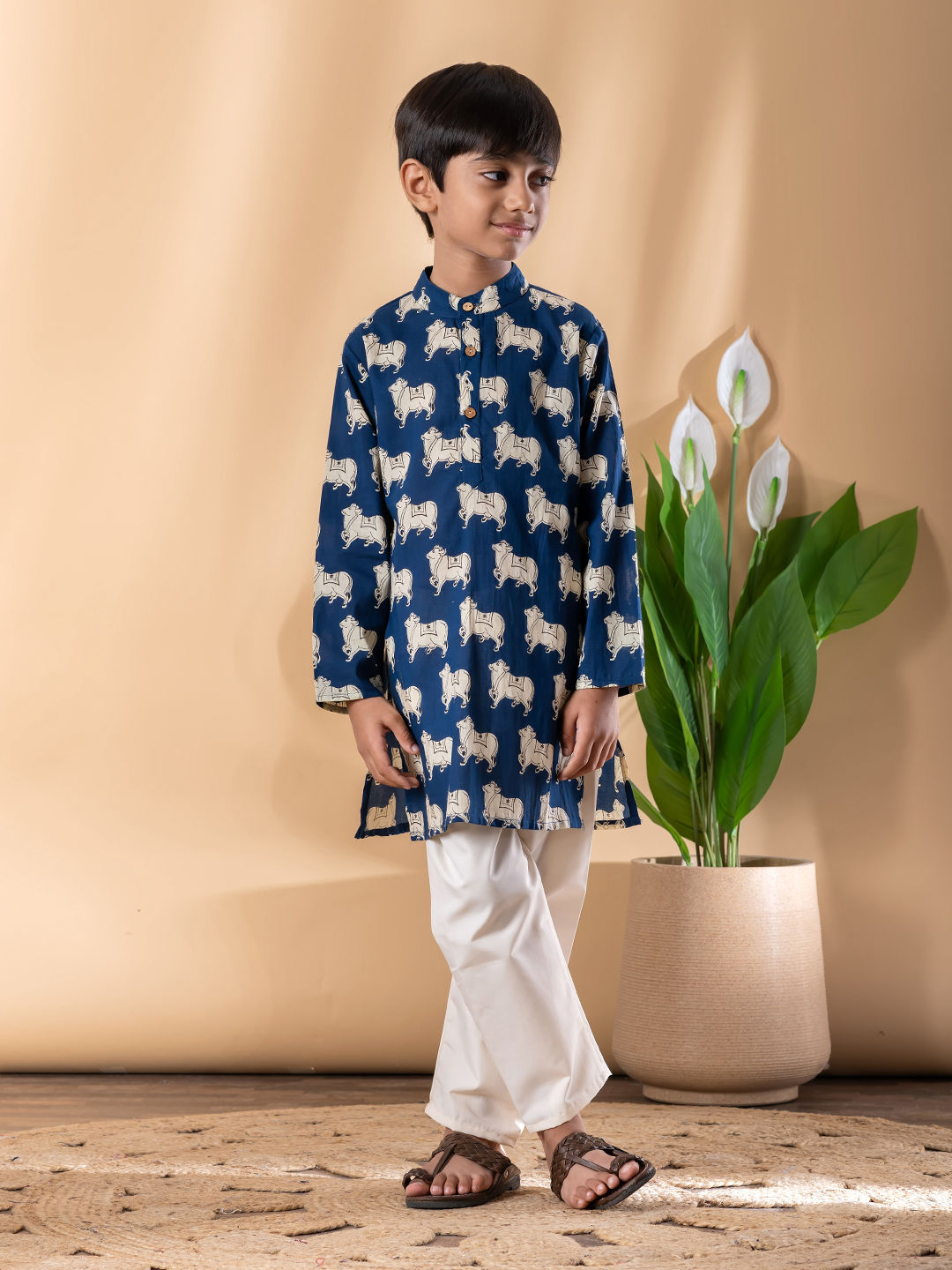 Blue color Boys Kurta Pyjama in Cotton fabric with Printed work