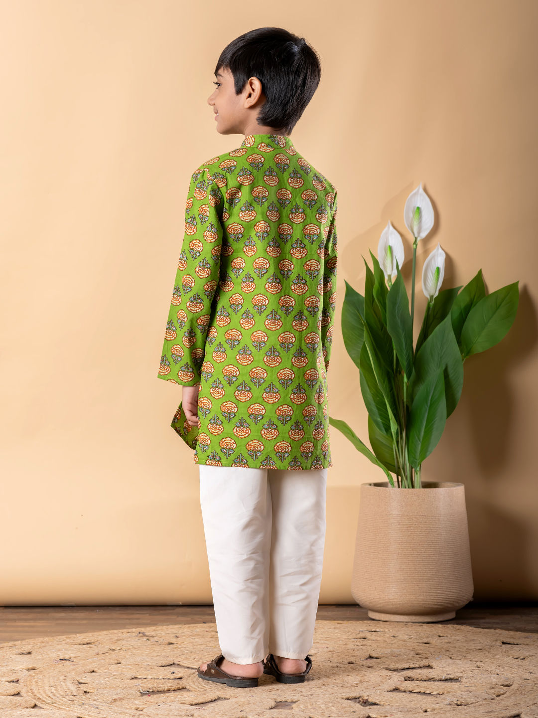 Green color Boys Kurta Pyjama in Cotton fabric with Printed work