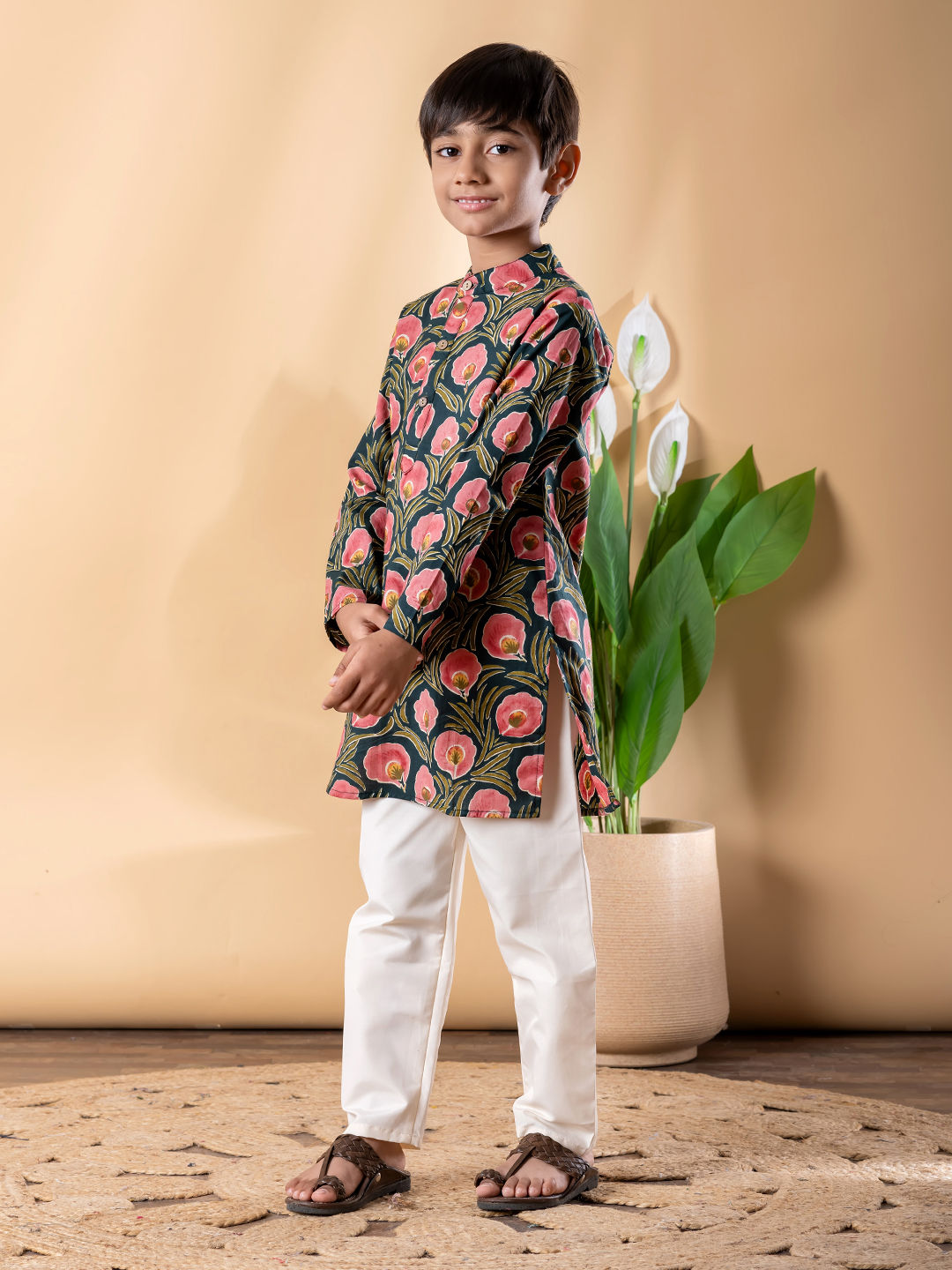 Green color Boys Kurta Pyjama in Cotton fabric with Printed work