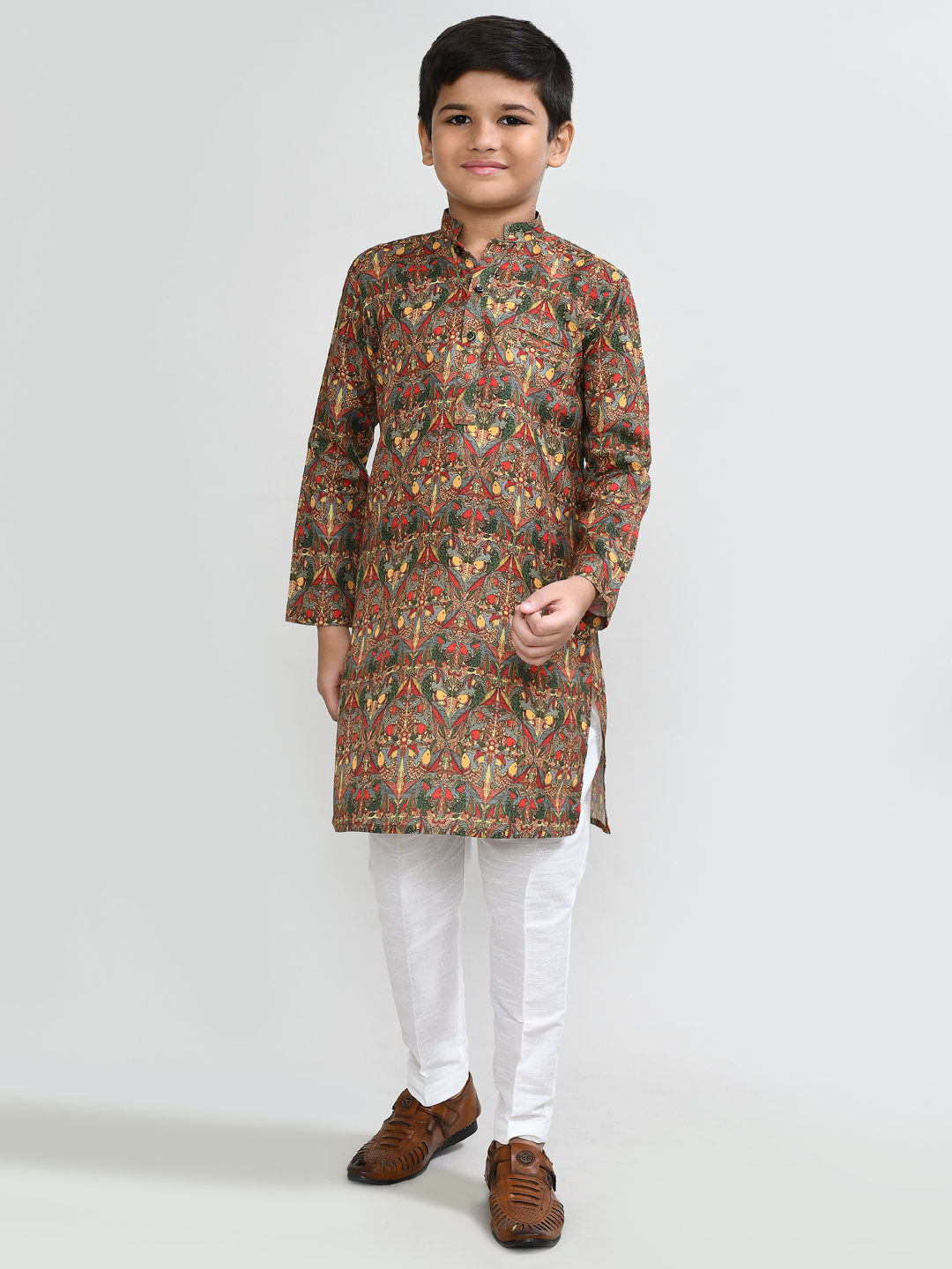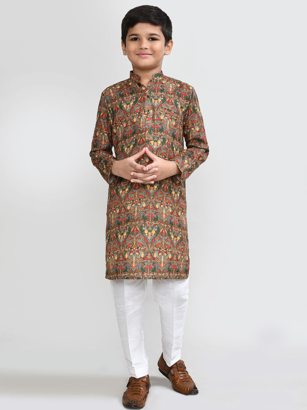 Multicolor color Boys Kurta Pyjama in Cotton fabric with Printed work