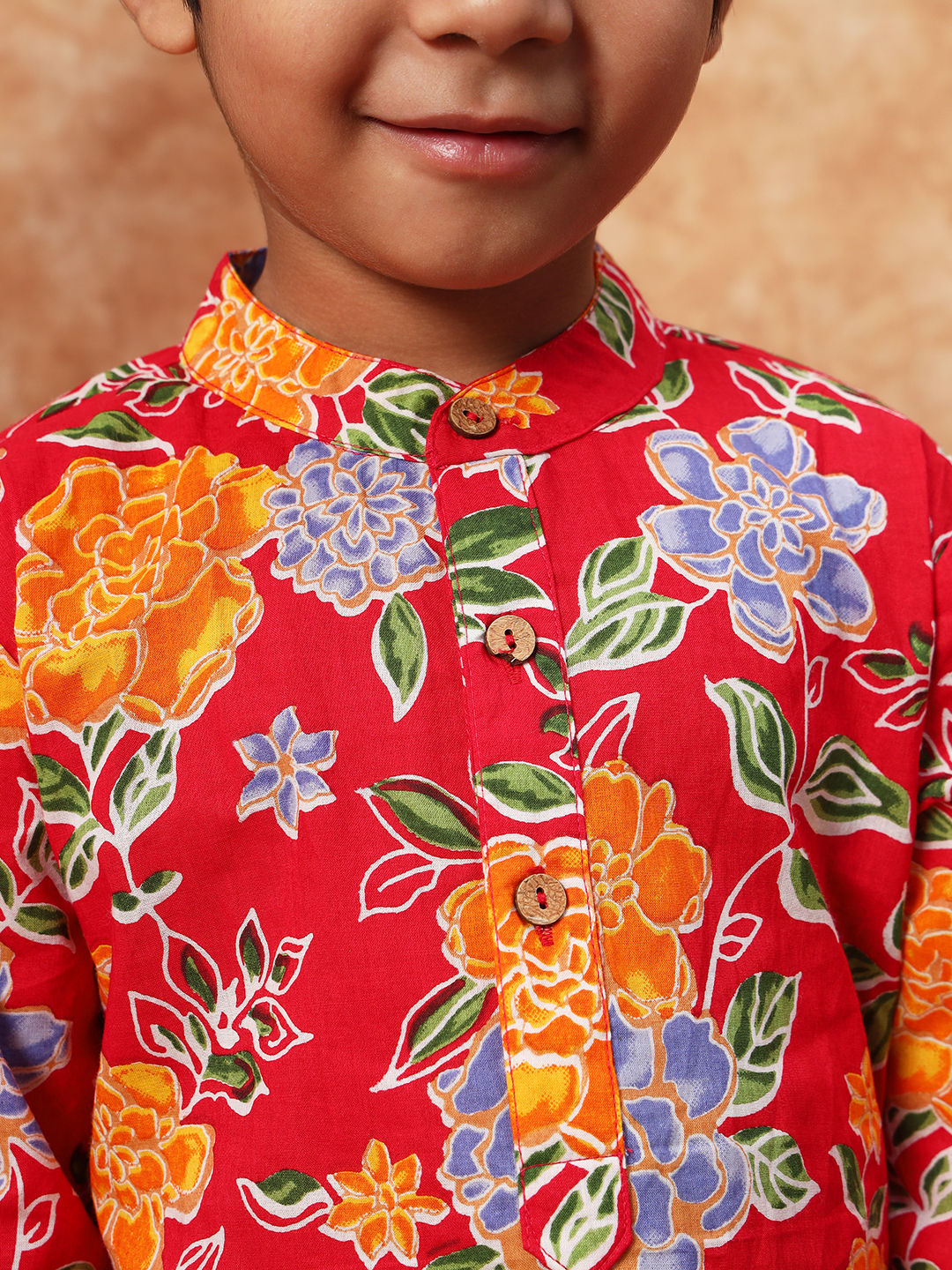 Red and Maroon color Boys Kurta Pyjama in Cotton fabric with Printed work