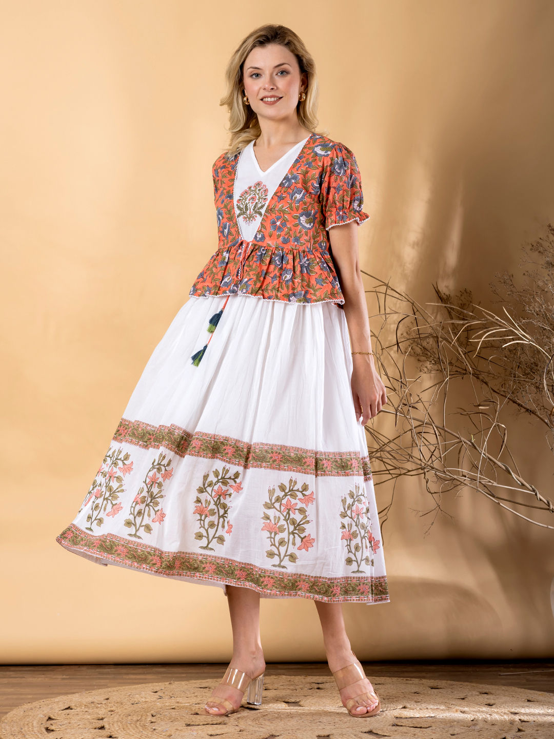 White and Off White color Dress in Cotton, Malmal fabric with Floral, Printed work