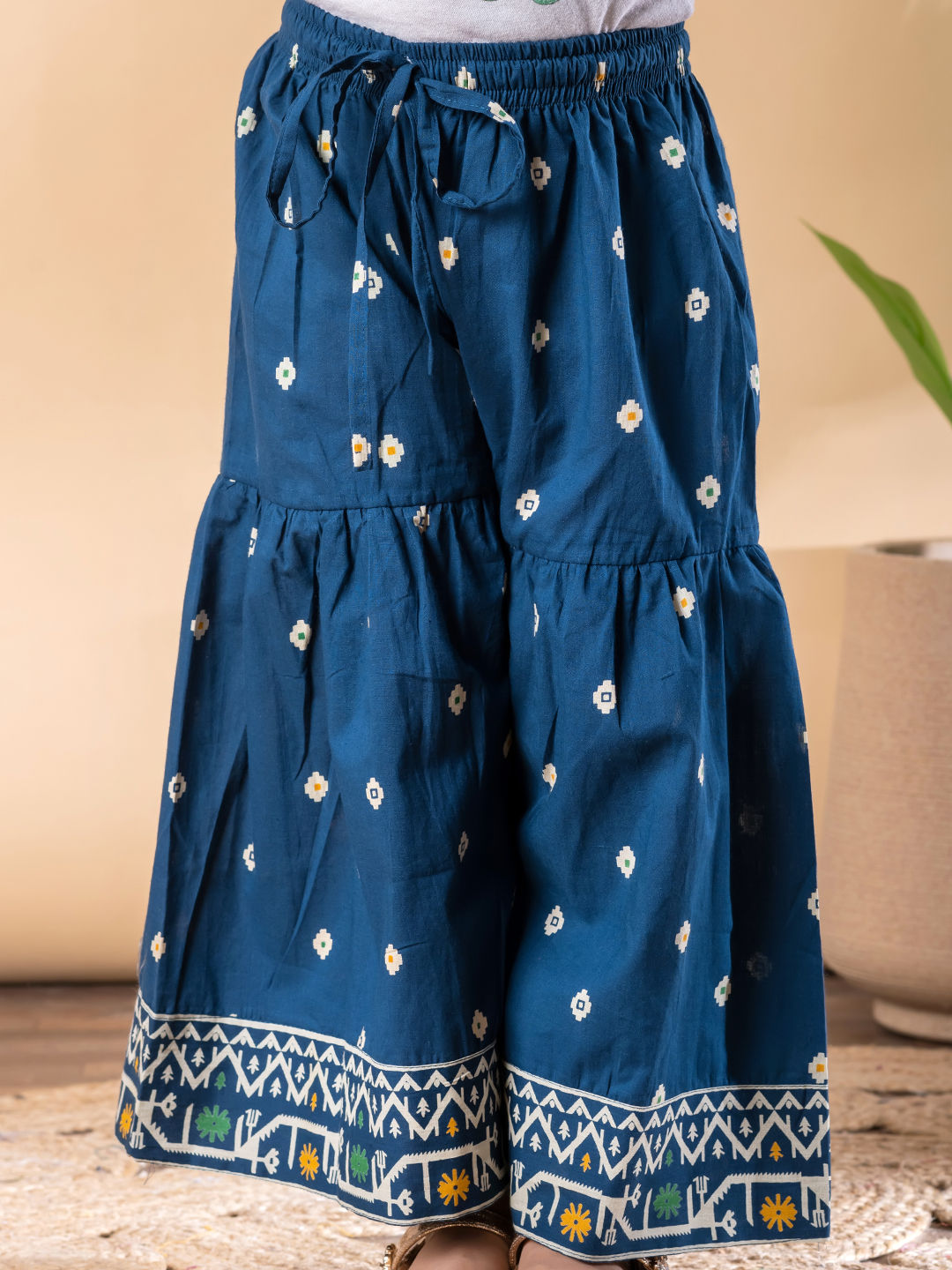 Blue color Girls Top with Bottom in Cotton fabric with Gota Patti, Printed work