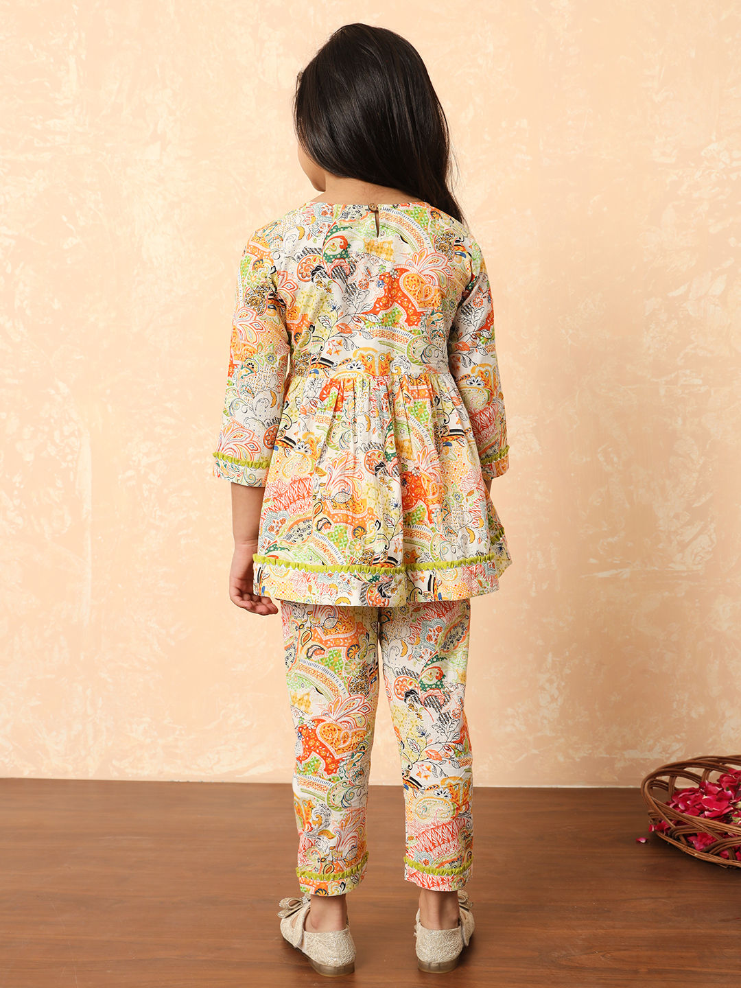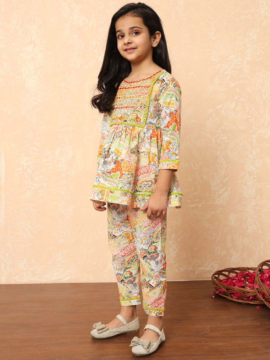 Cotton Festive Girls Top with Bottom in Multicolor with Gota Patti work