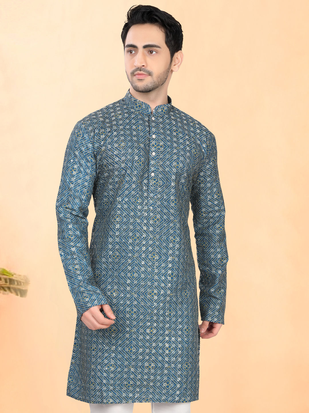 Black and Grey color Kurta in Cotton, Rayon fabric with Sequence, Thread work