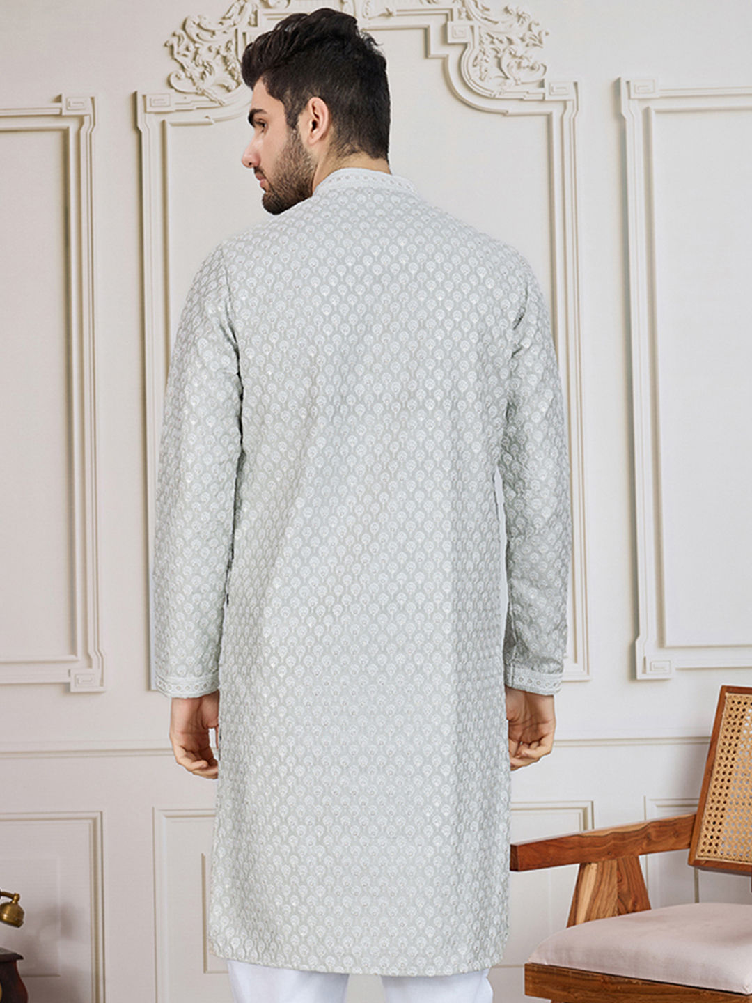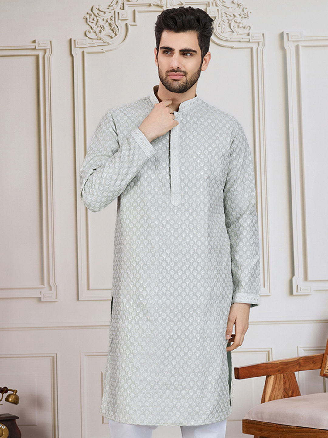 Polyester Silk Festive Kurta in Purple and Violet with Thread work