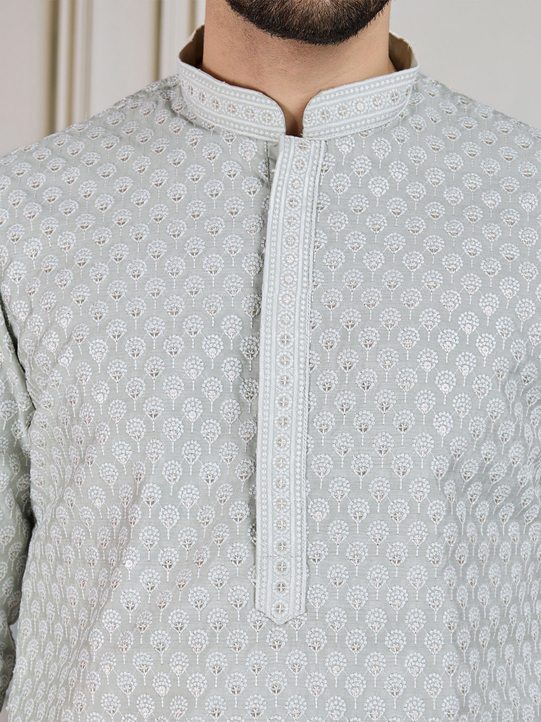 Cotton Traditional Kurta in Purple and Violet with Thread work