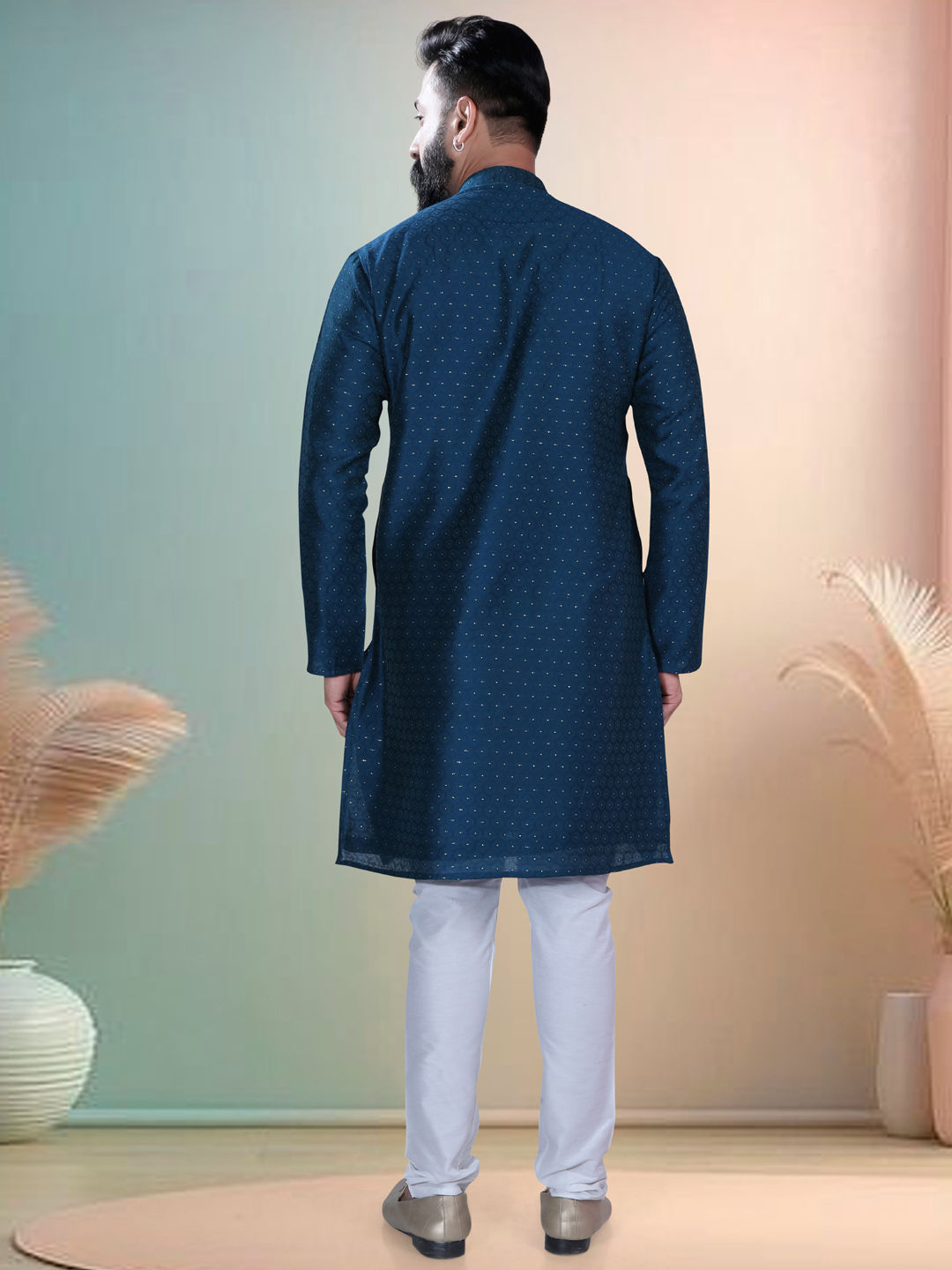 Cotton Traditional Kurta Pyjamas in Blue with Weaving work
