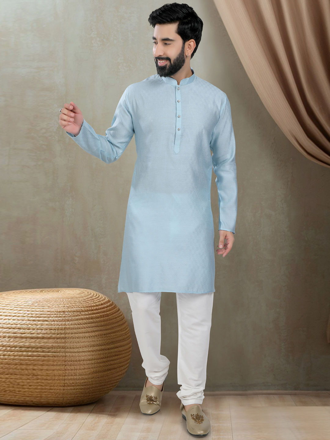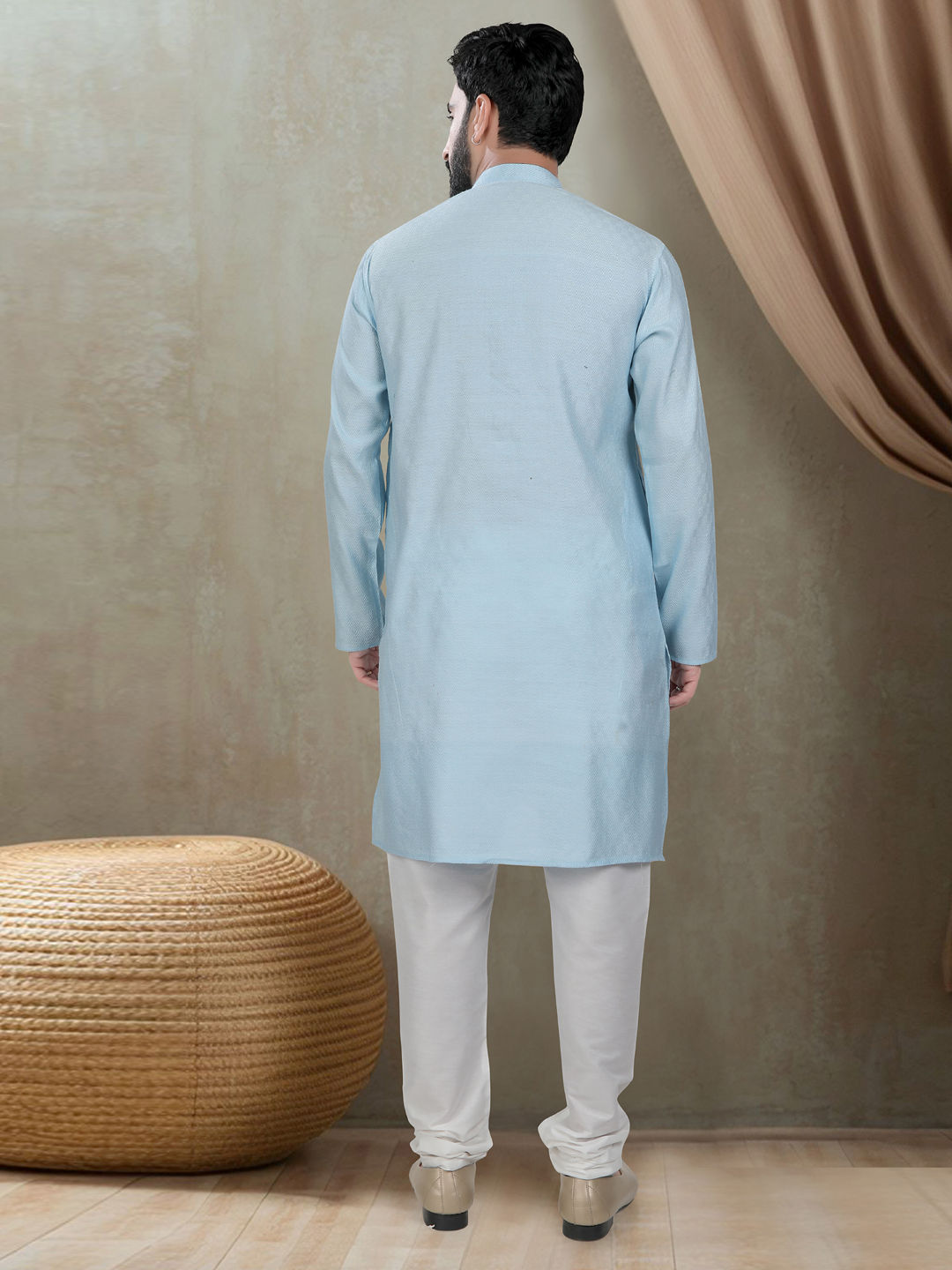 Silk Festive Kurta Pyjamas in Green with Printed work