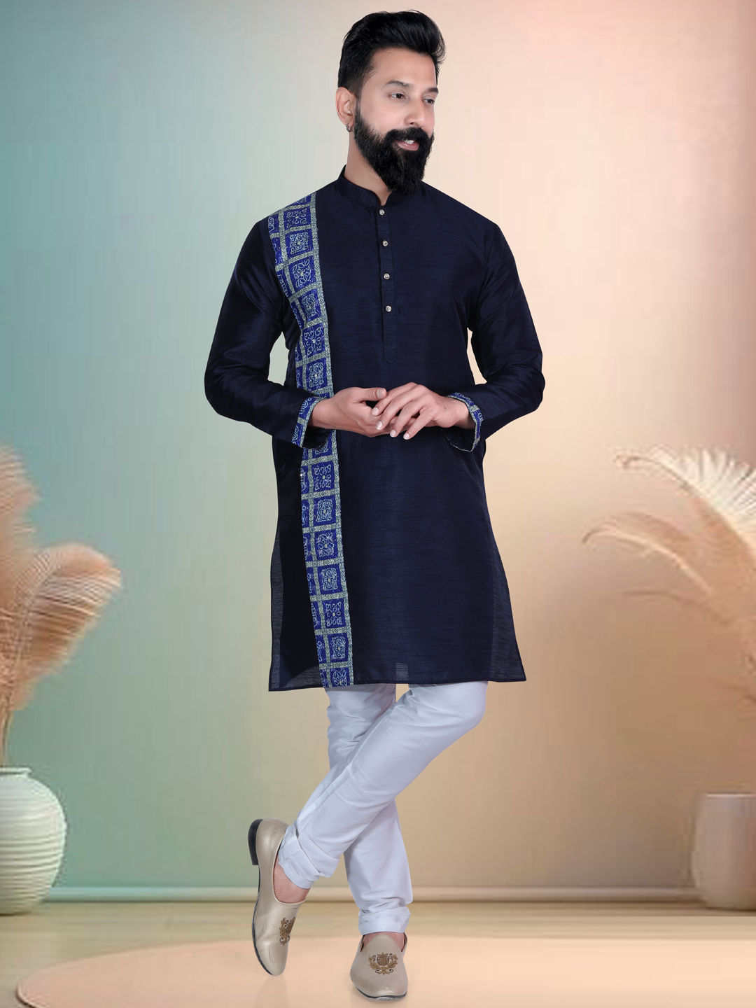 Cotton Traditional Kurta Pyjamas in Blue with Weaving work