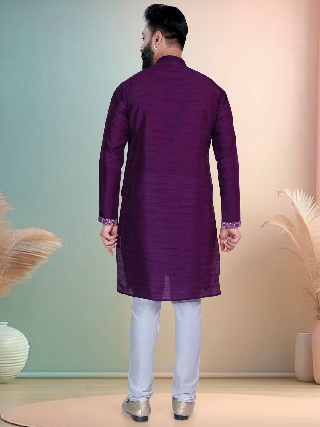 Cotton Traditional Kurta Pyjamas in Purple and Violet with Thread work