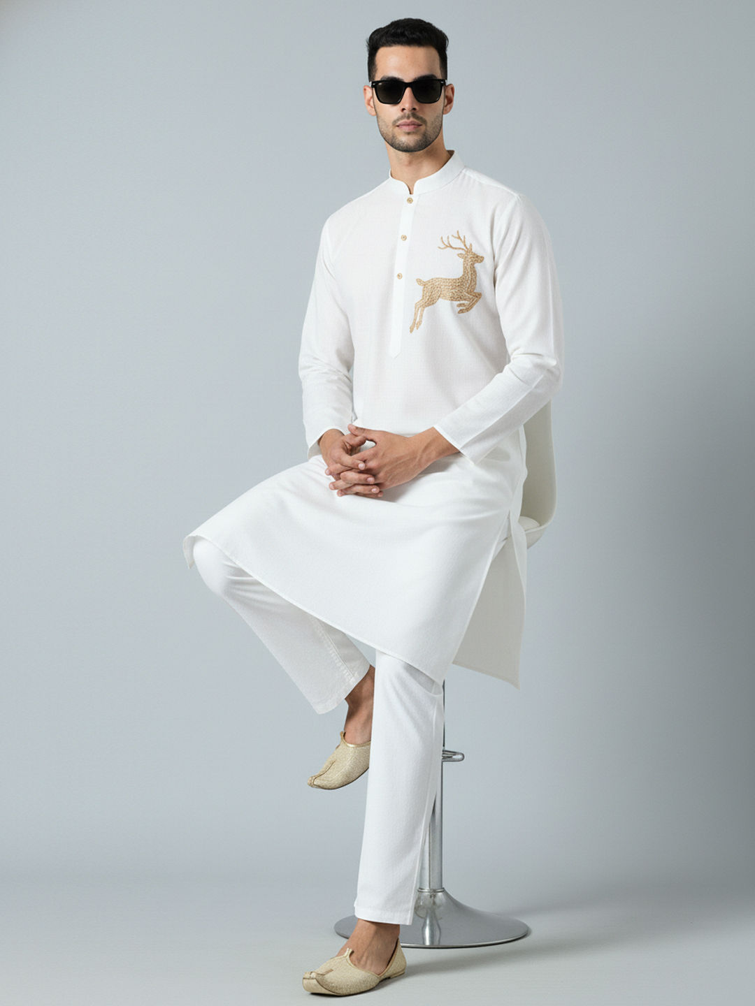 White and Off White color Kurta Pyjamas in Cotton fabric with Embroidered work